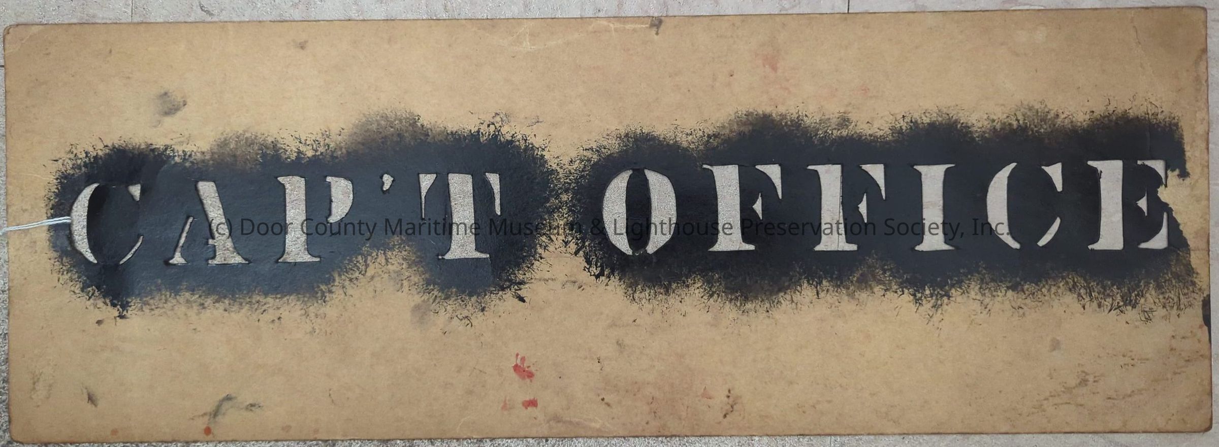 Tan paper stencil with the text "Cap't Office" cut out of the paper