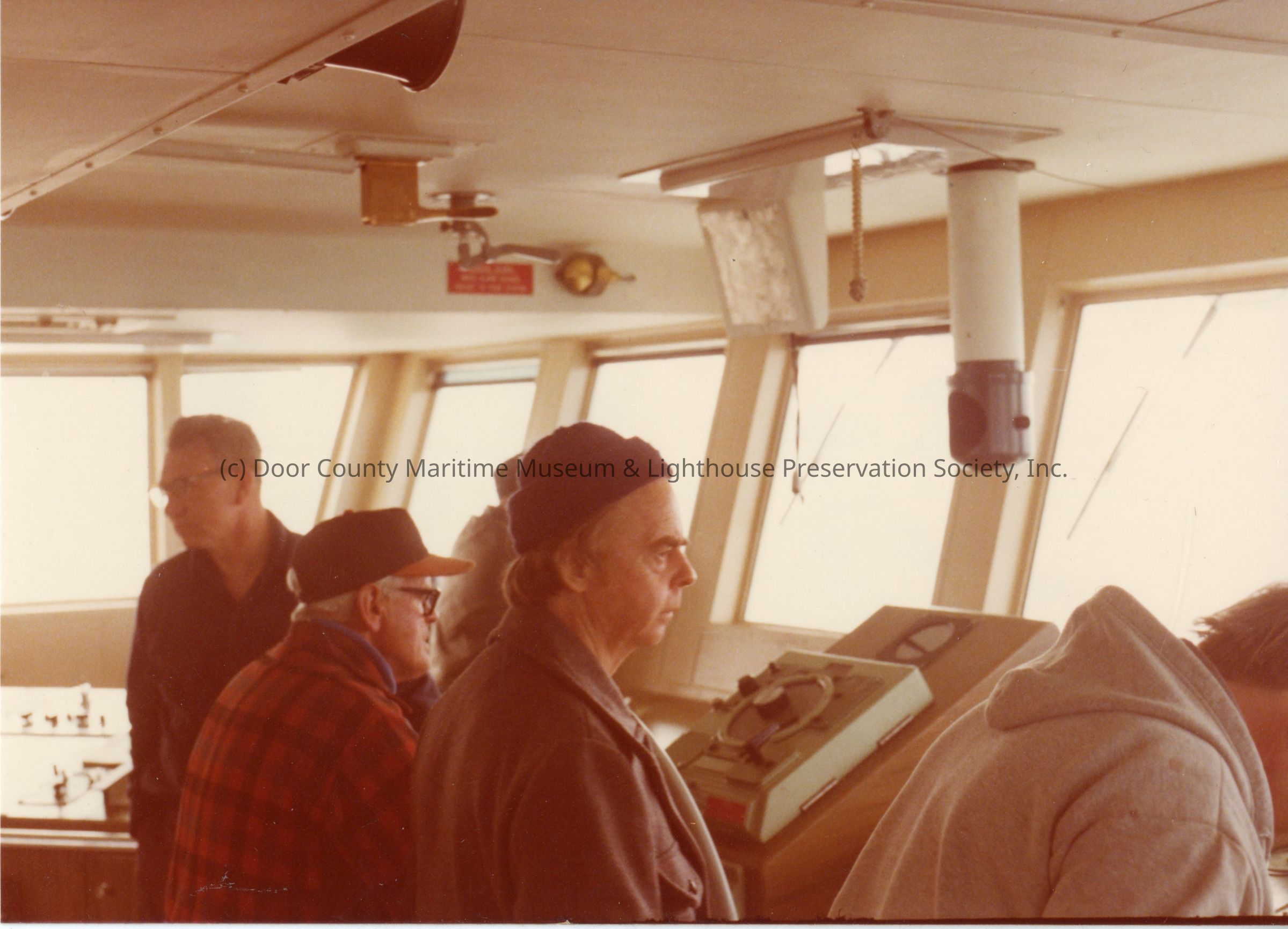 Captain Gene Gislason and wheelsman Hoyt Vrooman in pilot house of Jamie A. BaxterEntry/Object ID