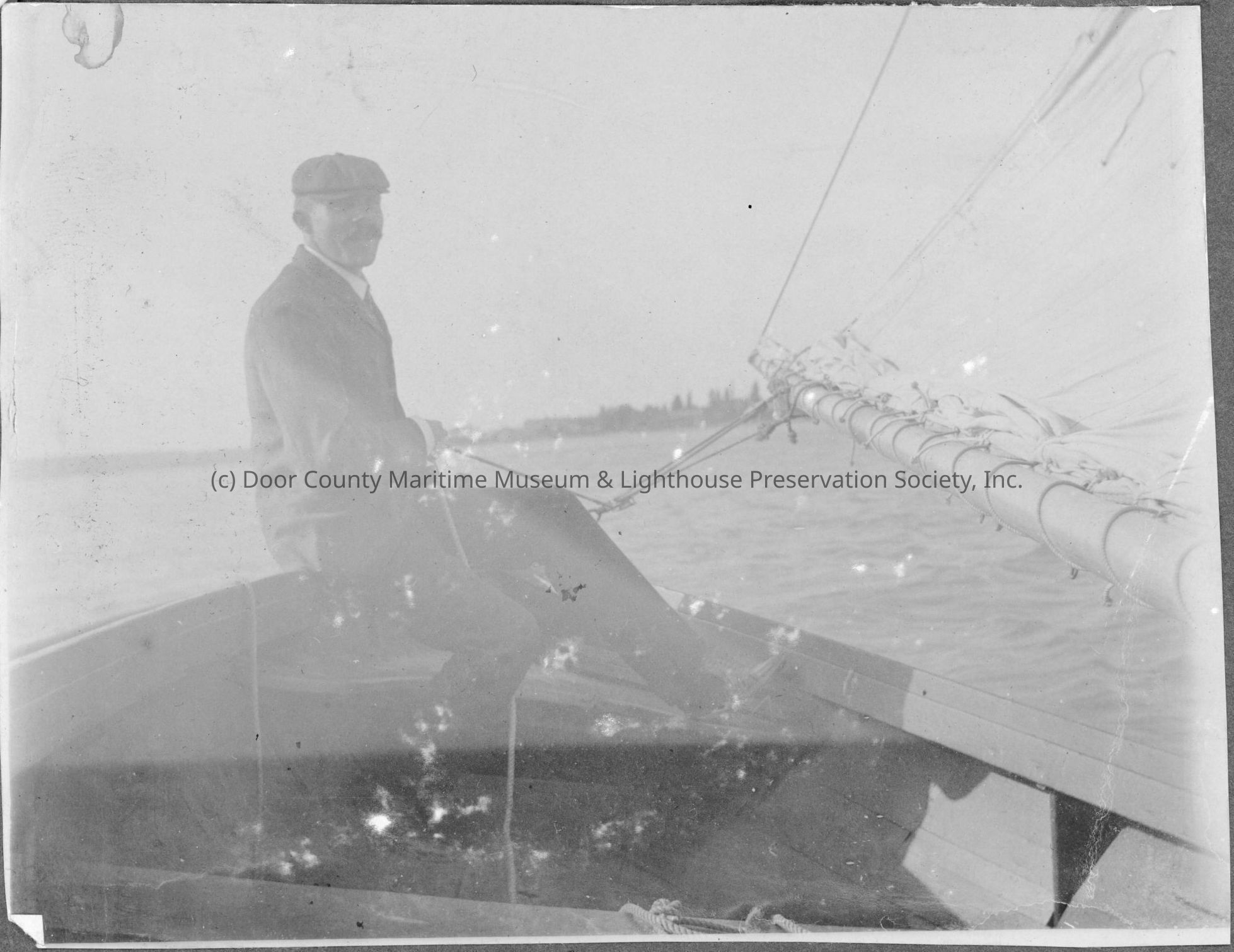 Captain M. A. Nygard on bow of sailboat