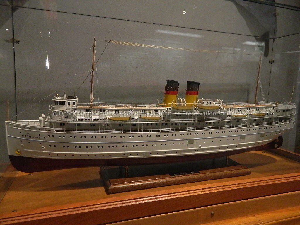 Basically white; brownish-red keel; two yellow, red and black smokestacks; two masts; 12 life boats on deck; 24 chairs on deck; black paint on side Chicago Duluth & Georgian Bay Transit Co.; South AmericanLocation
