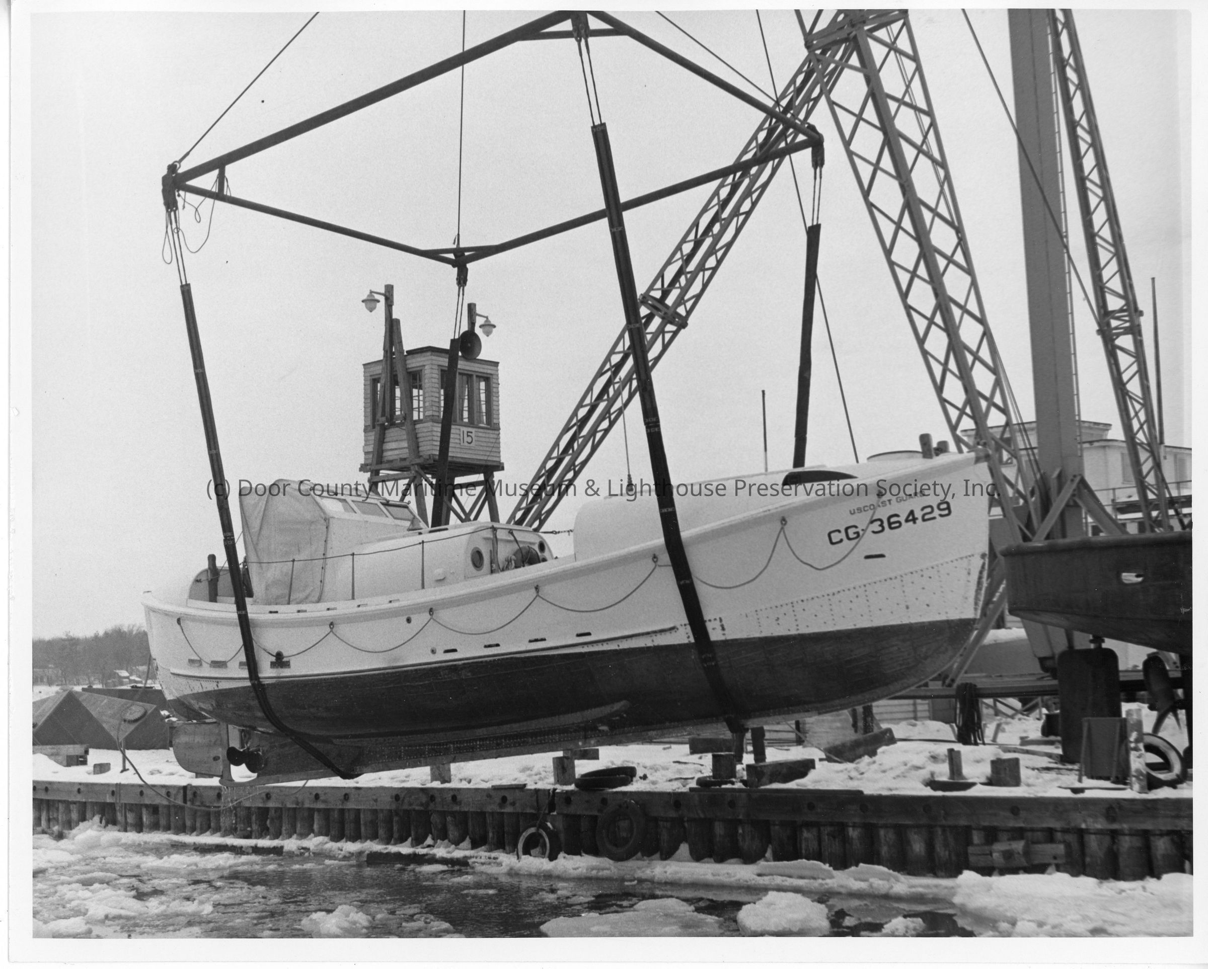 CG-36429 suspended above icy water