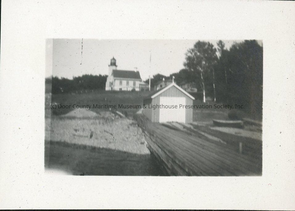 Lighthouse, pier and boathouse at Chambers Island. 1924