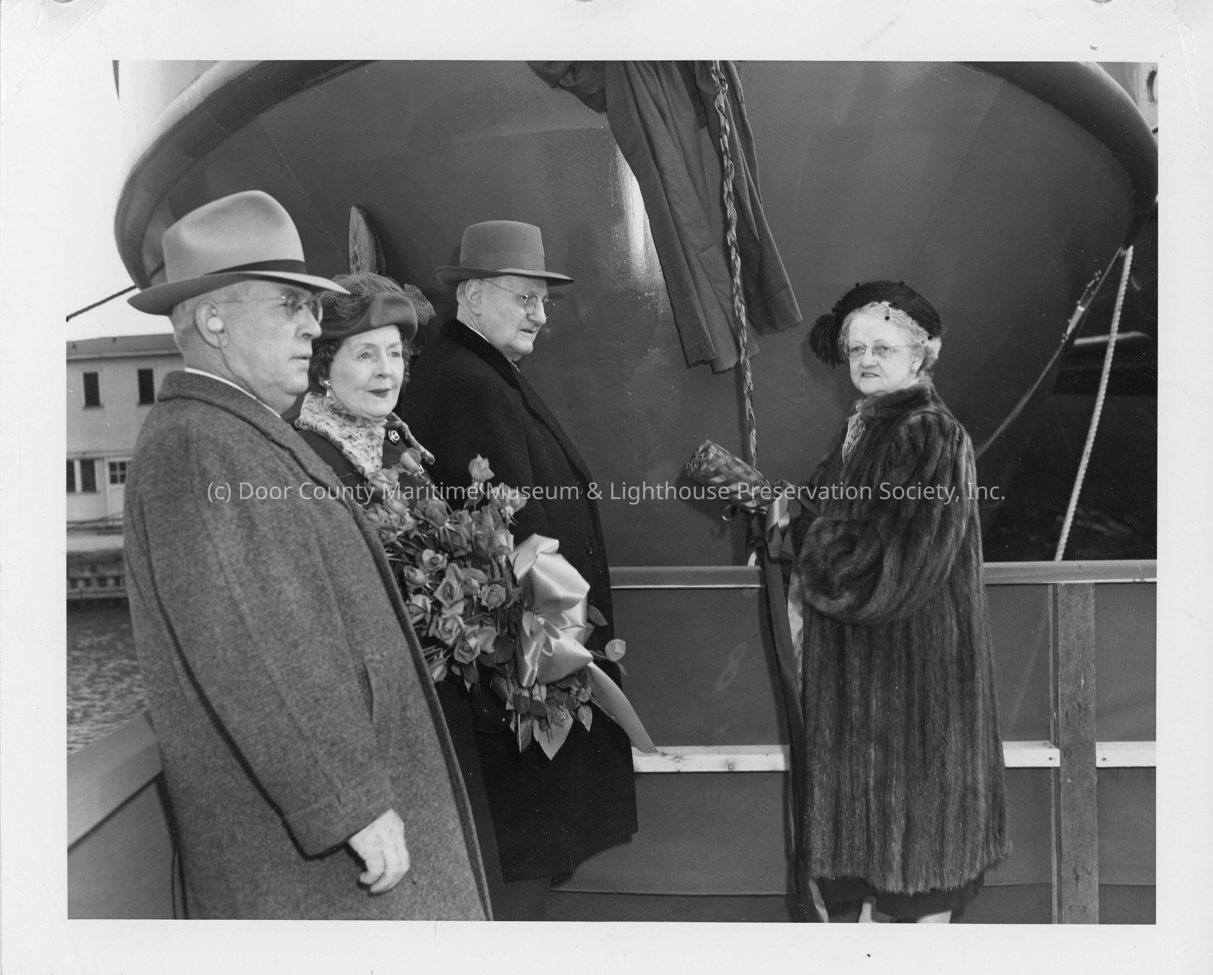 Christening party for Chicago Fireboat in sponsor box at Christy Corp 1949