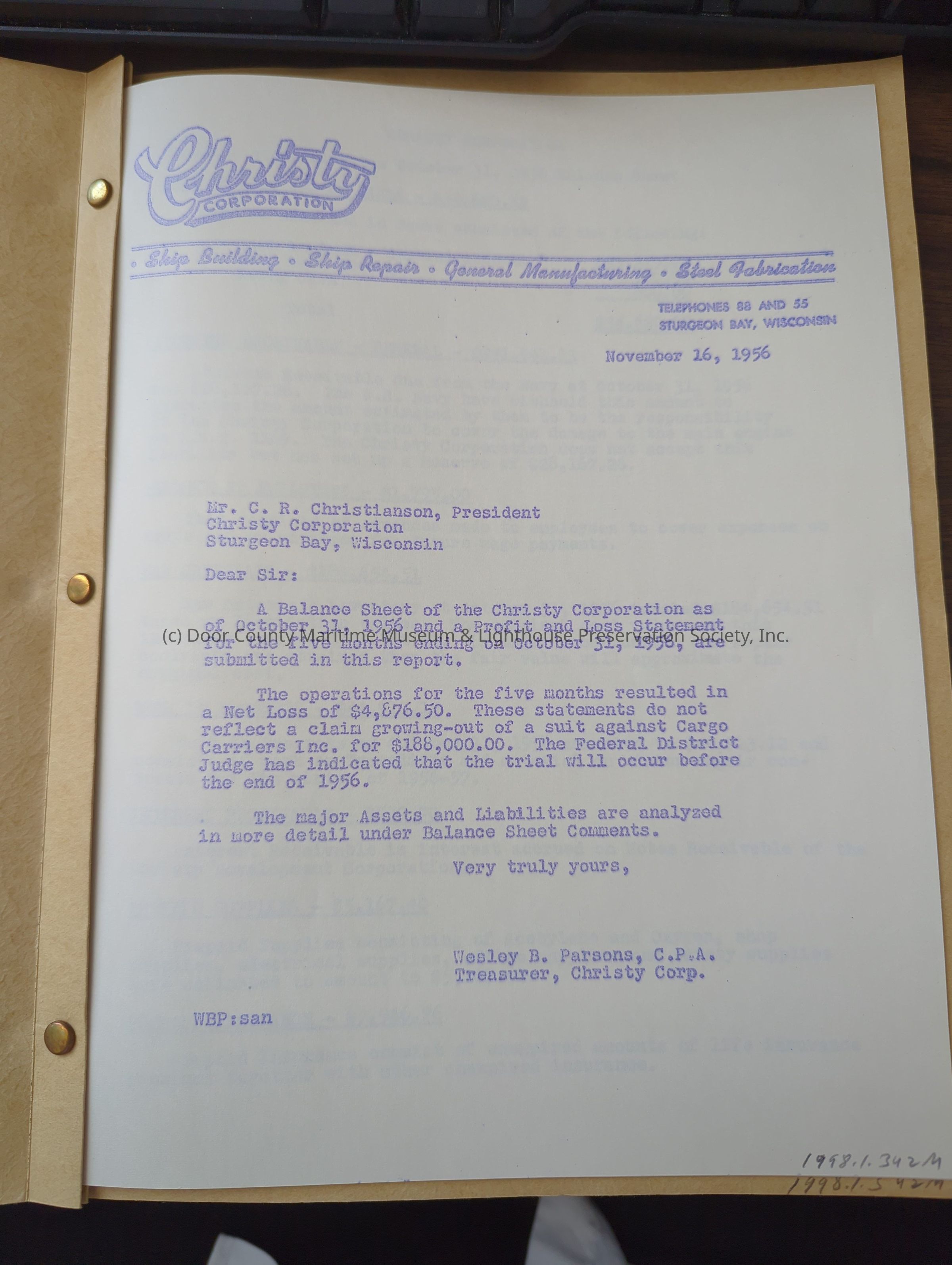 Christy Corp Fove Month Profit Ledger 1956