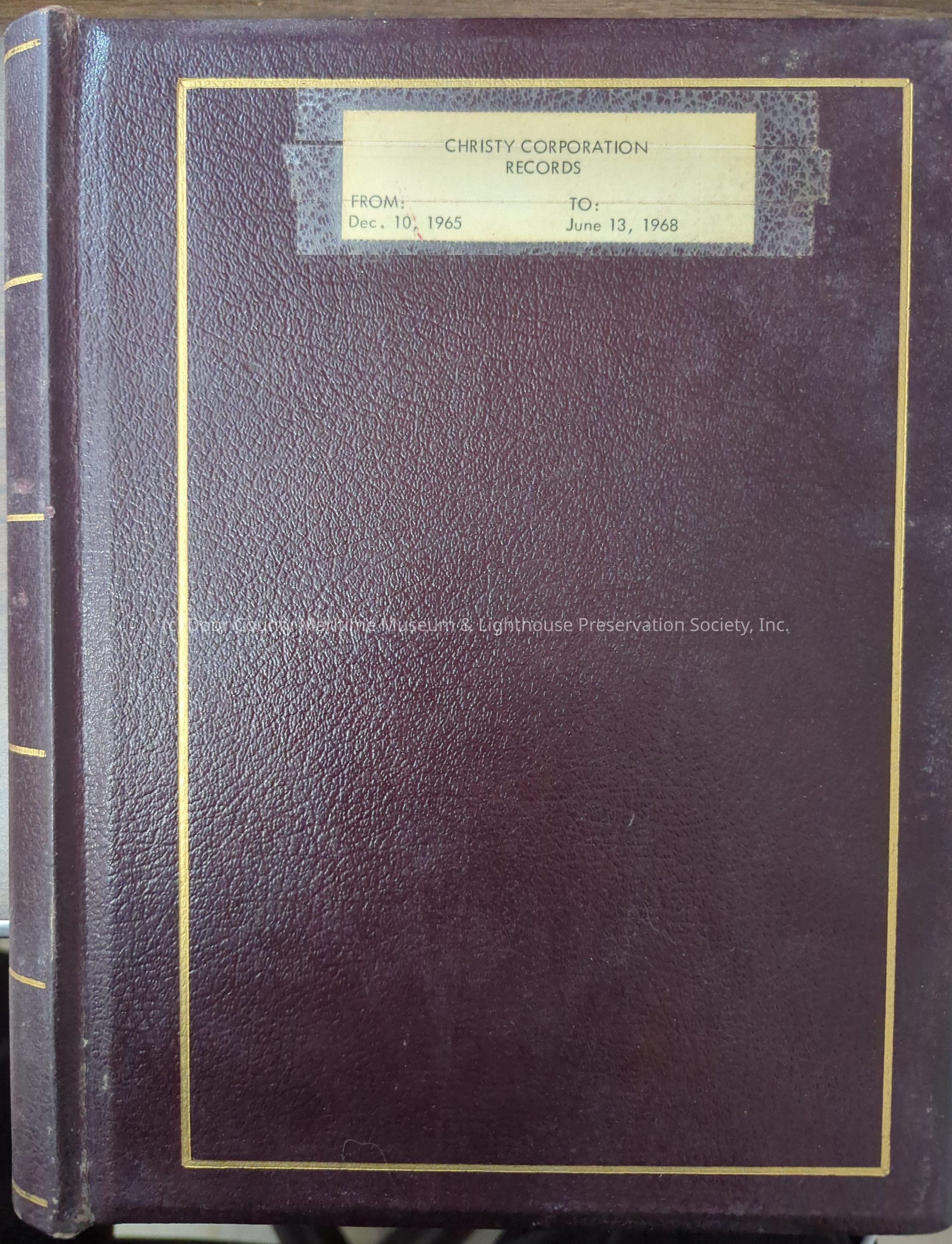 Brown hard cover binder containing Christy Corp board and stockholder meeting minutes between 1965-1968Location
