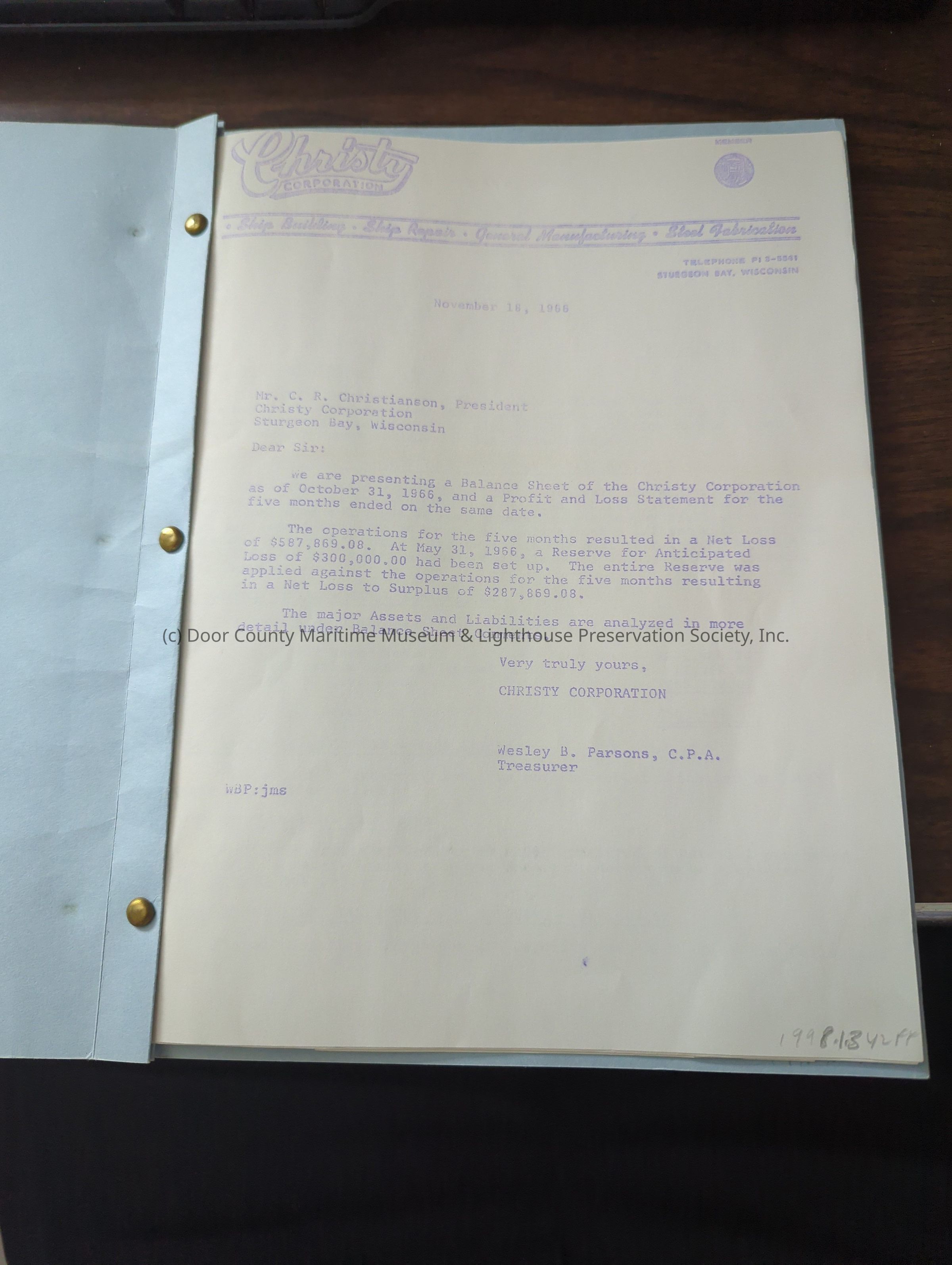 Christy Corporation Five Month Profit Ledger 1966