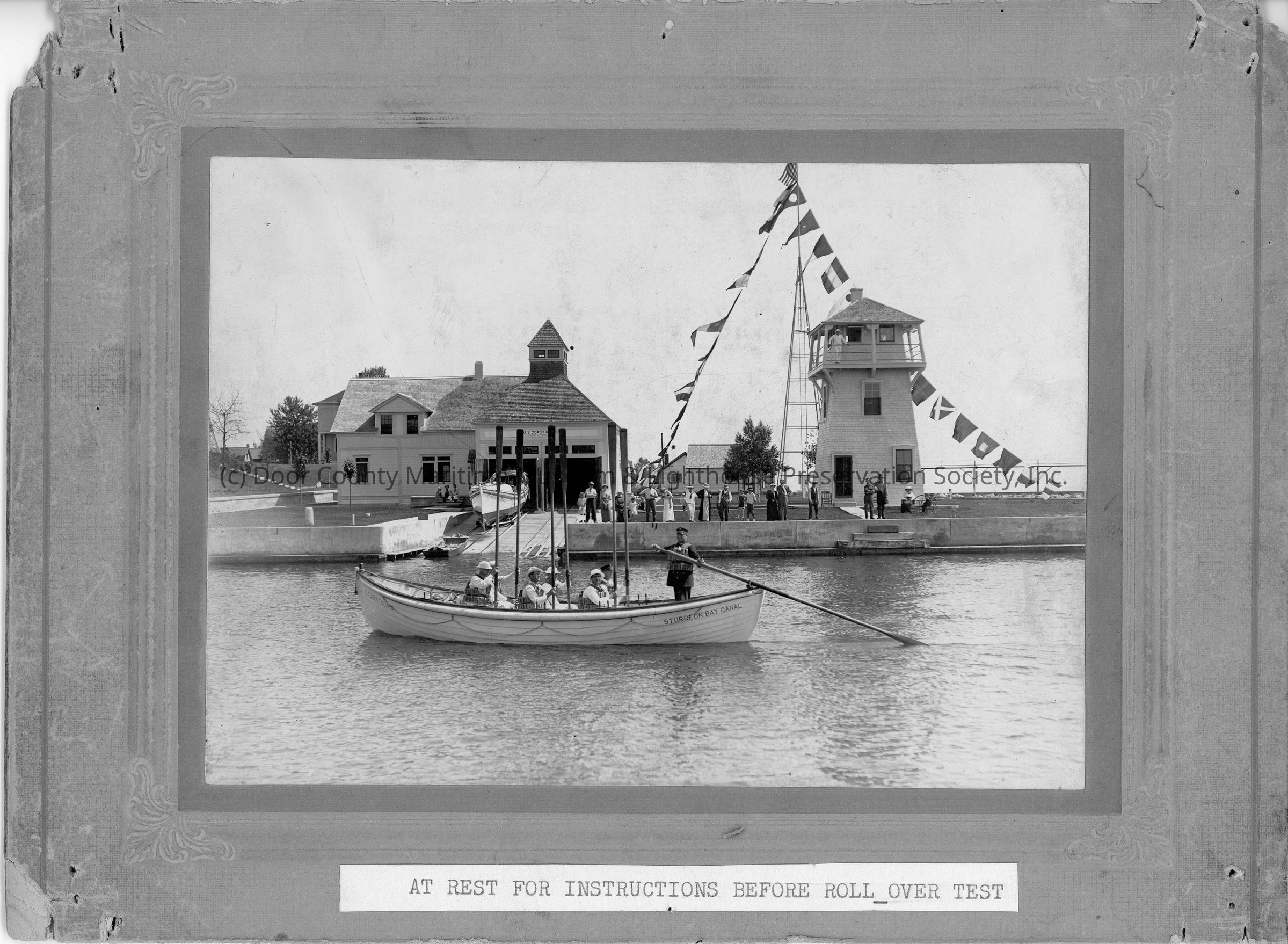 Coast Guard in boat before roll over test at Sturgeon Bay Canal Station 1919