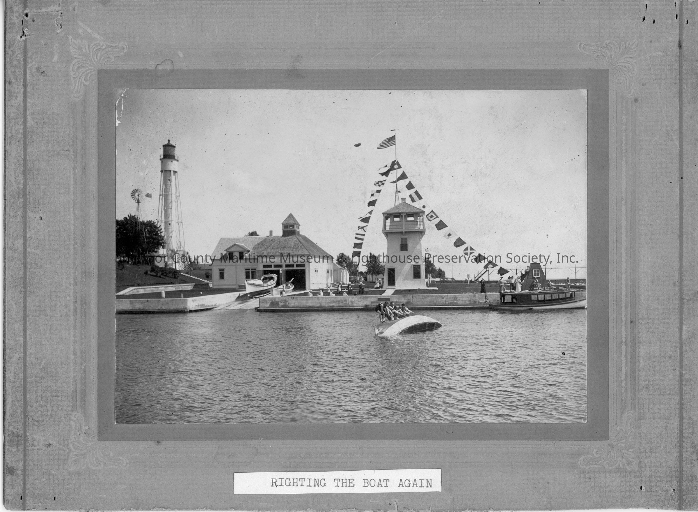 Coast Guard in boat before roll over test at Sturgeon Bay Canal Station 1919