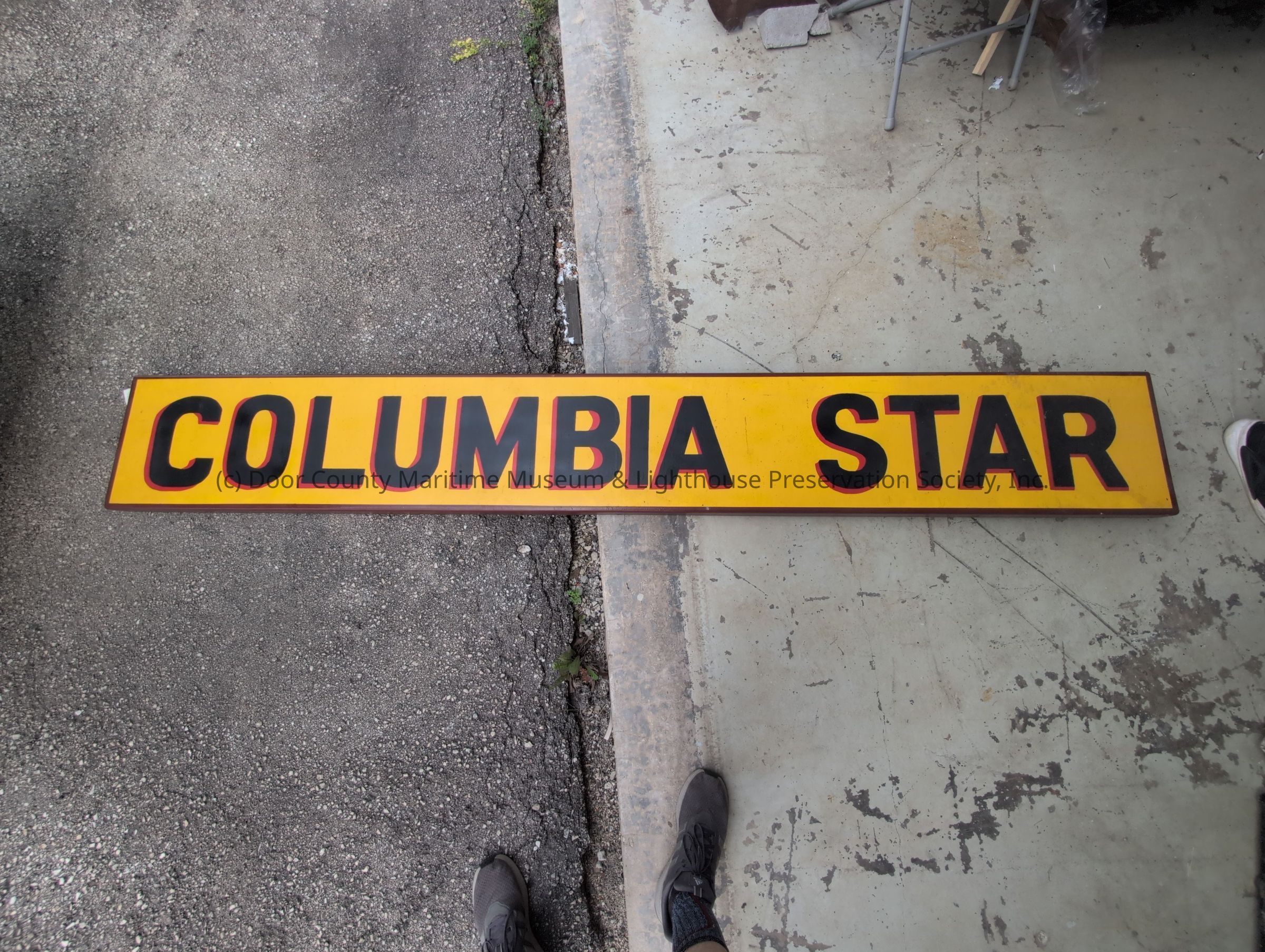 Brown metal with yellow background and brown letters. Red trim. "Columbia Star"