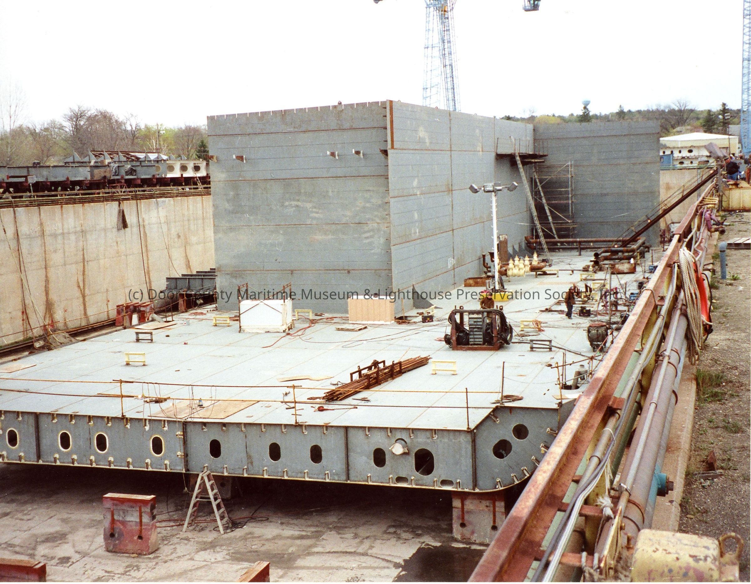 Construction of oil barge in graving dock at Bay Shipbuilding 2002