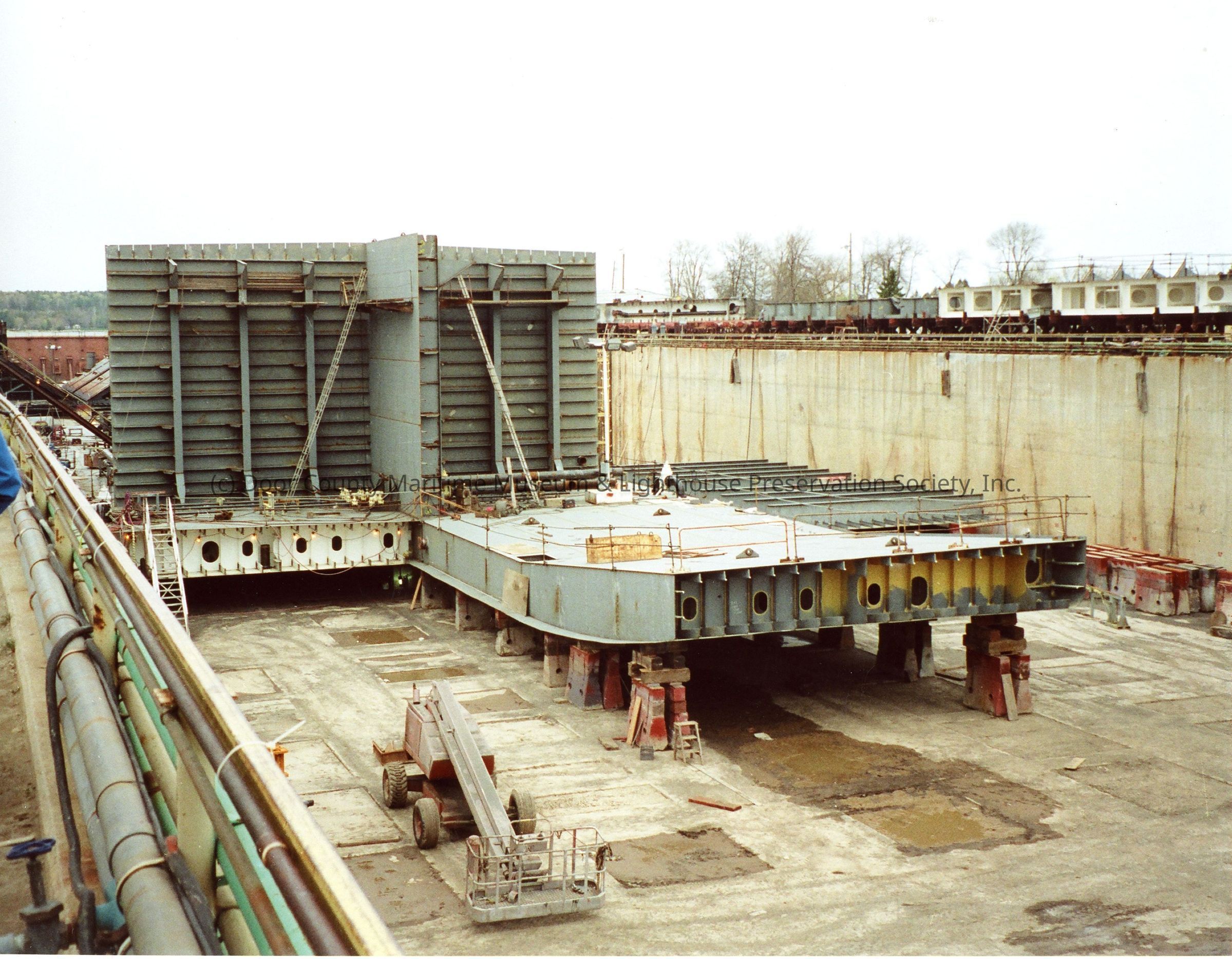 Construction of oil barge in graving dock at Bay Shipbuilding 2002