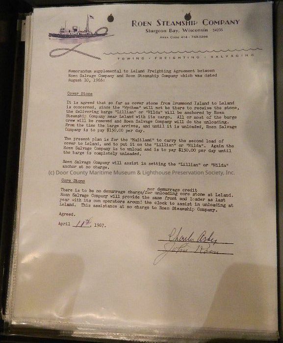Collection of correspondence, etc. relative to raising of "George M. Humphrey"; 11A: July 20, 1959 letter from Roen Steamship Co. to Bucyrus-Erie Company; 11B: July 24, 1959 letter from Roen Steamship Co. to Bucyrus-Erie Company; 11C: Daily Report of Operations from Roen Steamship Co. (June 15, 1962); 11E: June 21, 1943 letter from Smith Brothers to Kinman Transit Co. (2 pg.);11F: July 27, 1943 (7 pg.) document from Salvage Association, London; 11G: 1966-67 (6 pg.) agreement between Roen Salvage Co. & Roen Steamship Co.; 11H: May 26, 1958 (3 pg.) memorandum between Roen Salvage Co. & Roen Steamship Co.; 11J; July 1962 (2 pg.) Summary of Operations in Dredging Lansing Shoal; 11K: May 27, 1966 (2 pg.) memorandum between Roen Salvage Co. & Roen Steamship Co.; 11M: drawing (2 pg.) South Breakwater - North Breakwater; 11N: drawing (2 pg.) North Breakwater.Location
