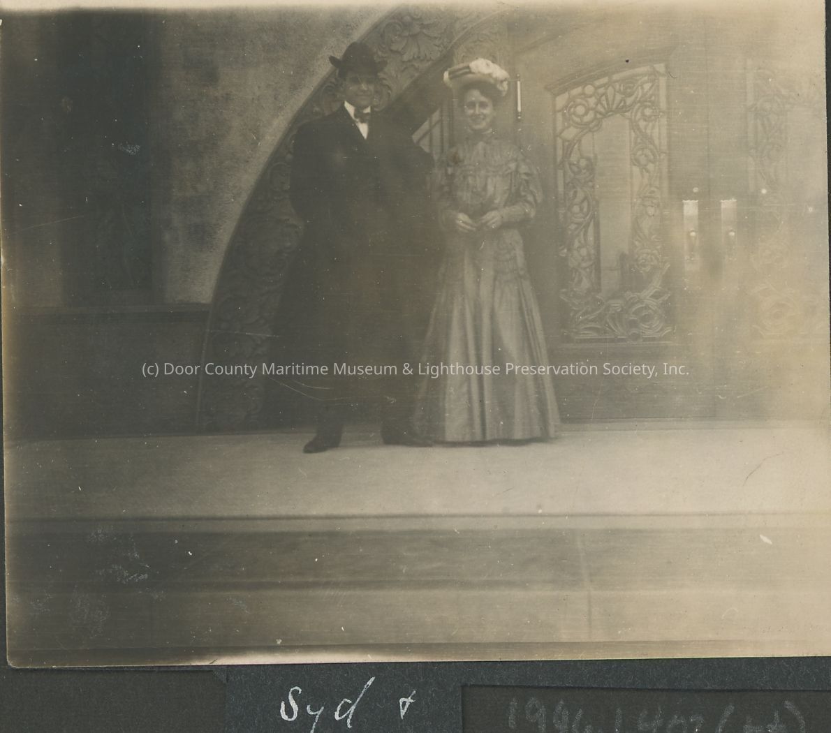 Couple posing at entrance of building