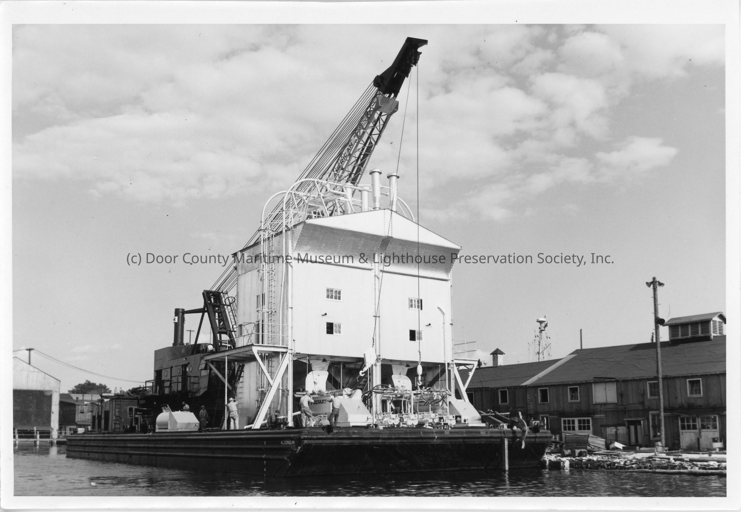 Crane barge at Christy Corp 1954