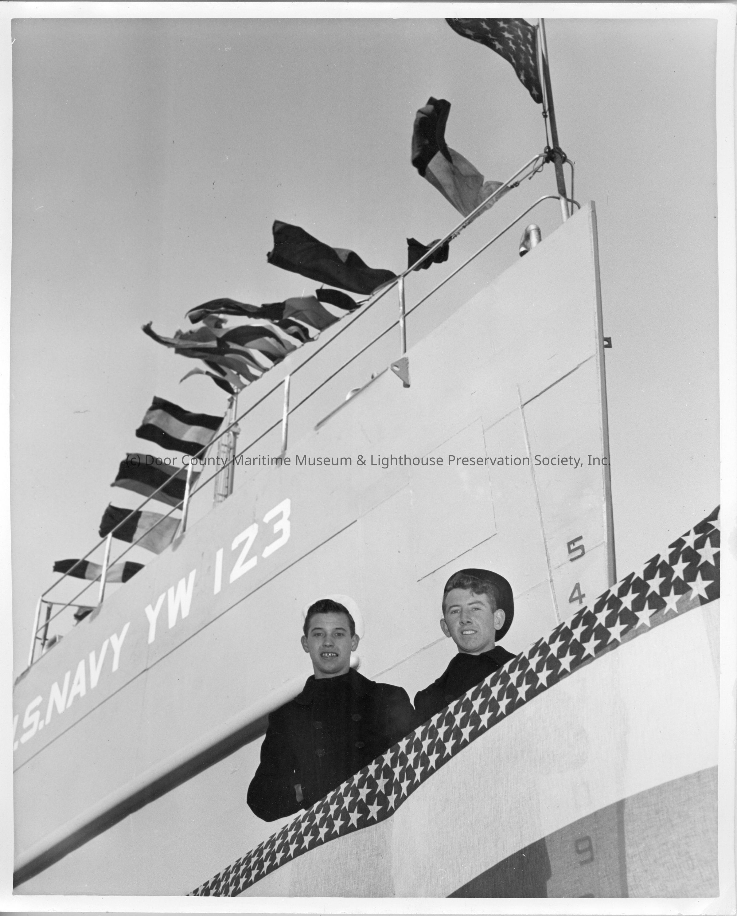 Crewmen of YW-123 at christening