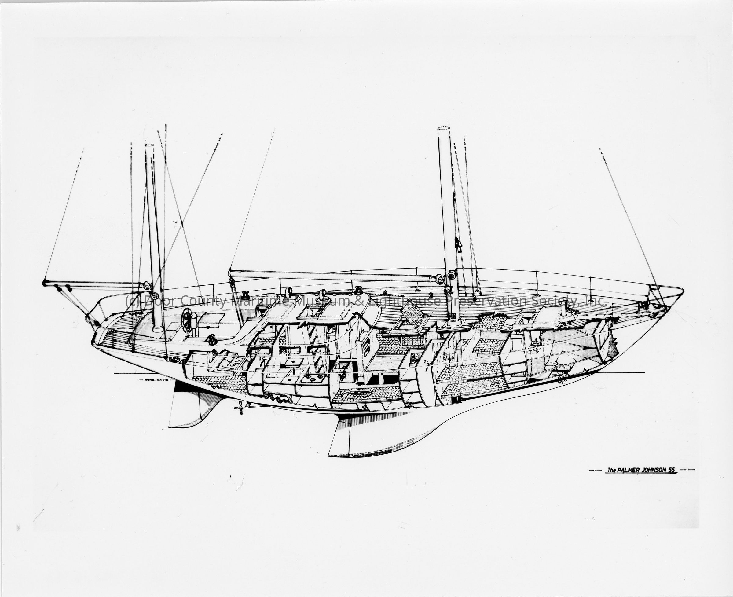 Cross section drawing of 63' Palmer Johnson motor yacht
