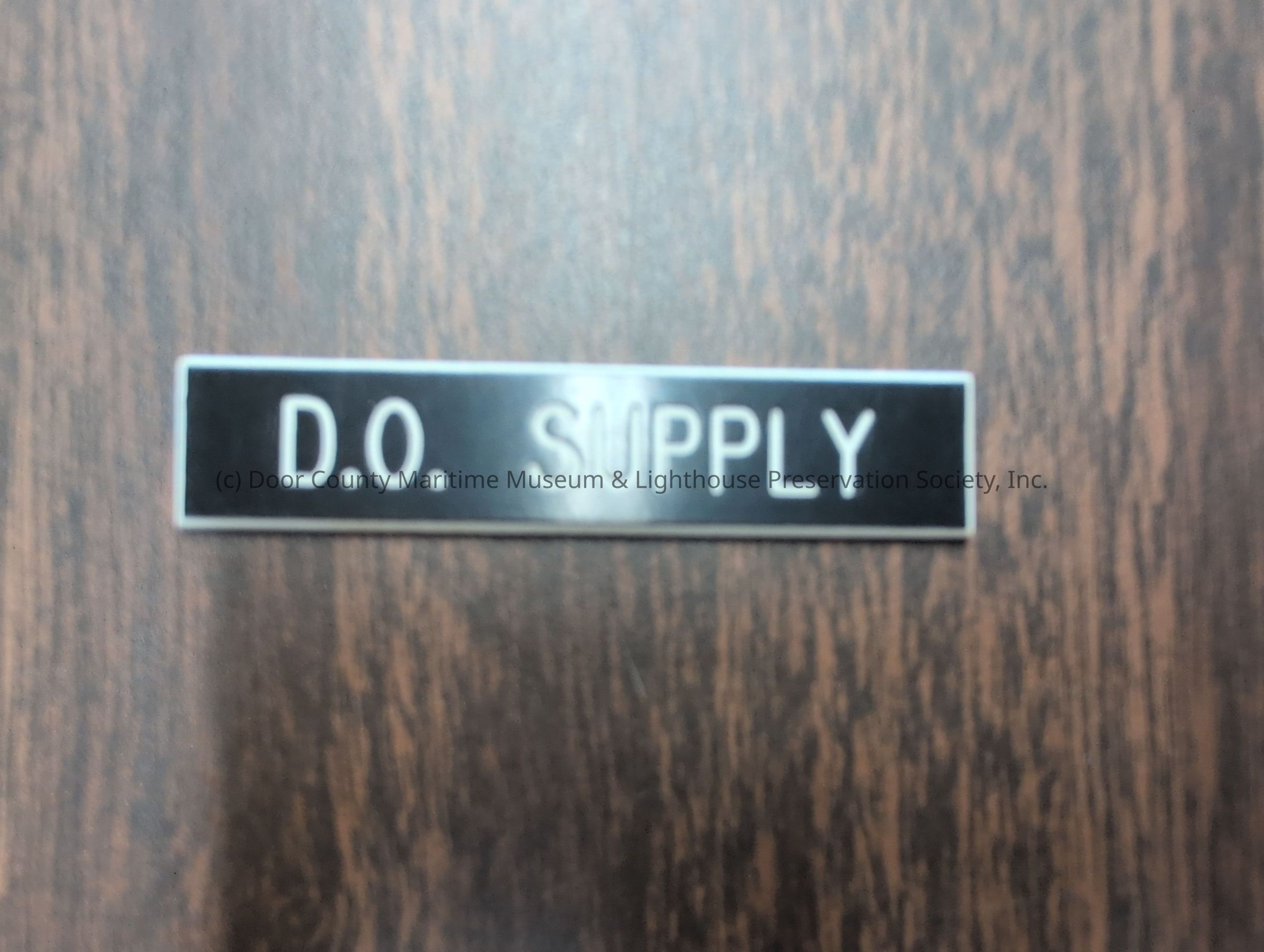 Wooden nameplate stating "D.O. Supply"