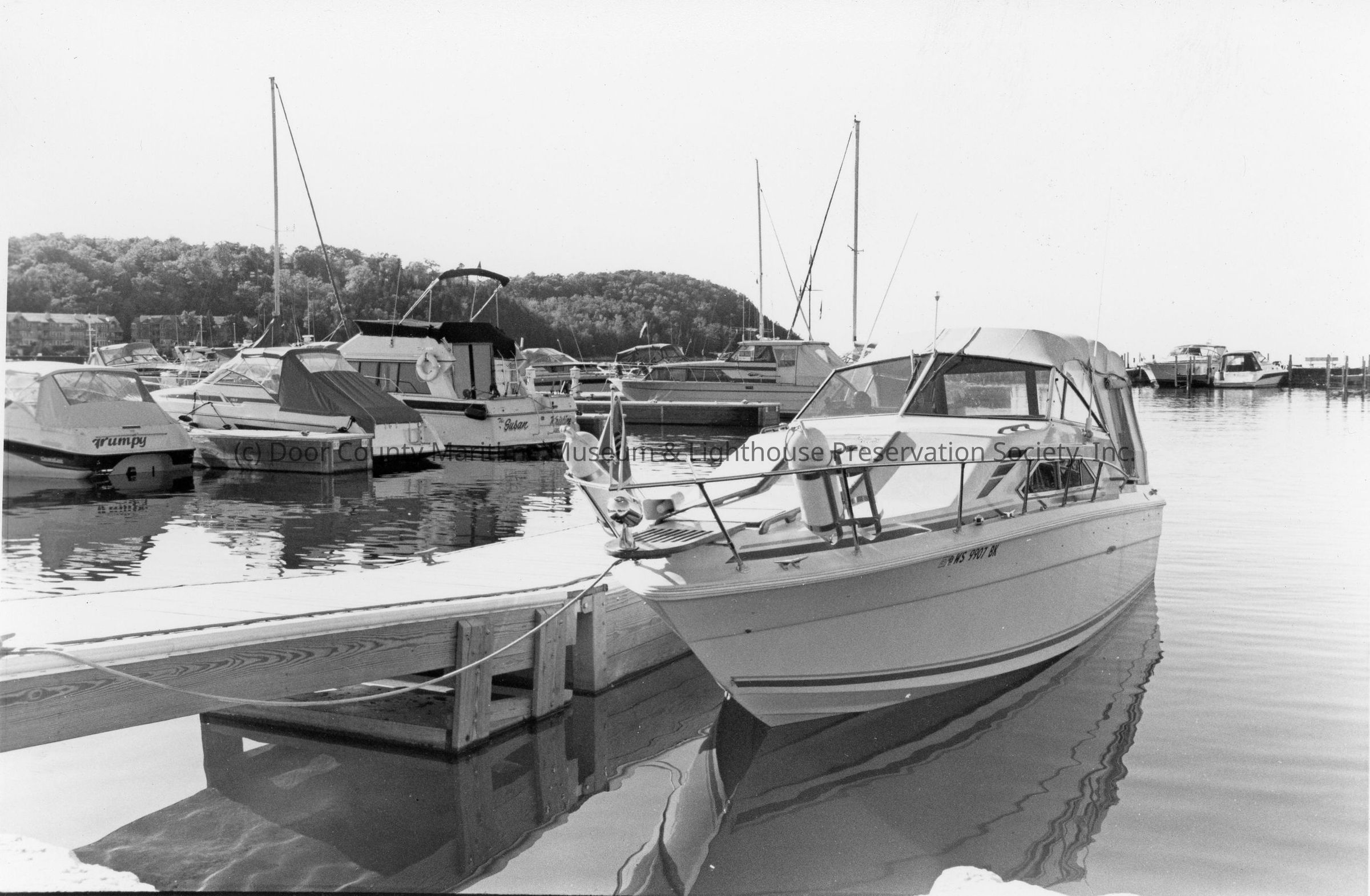 docked boats with vessel Frumpy on upper left side 1996