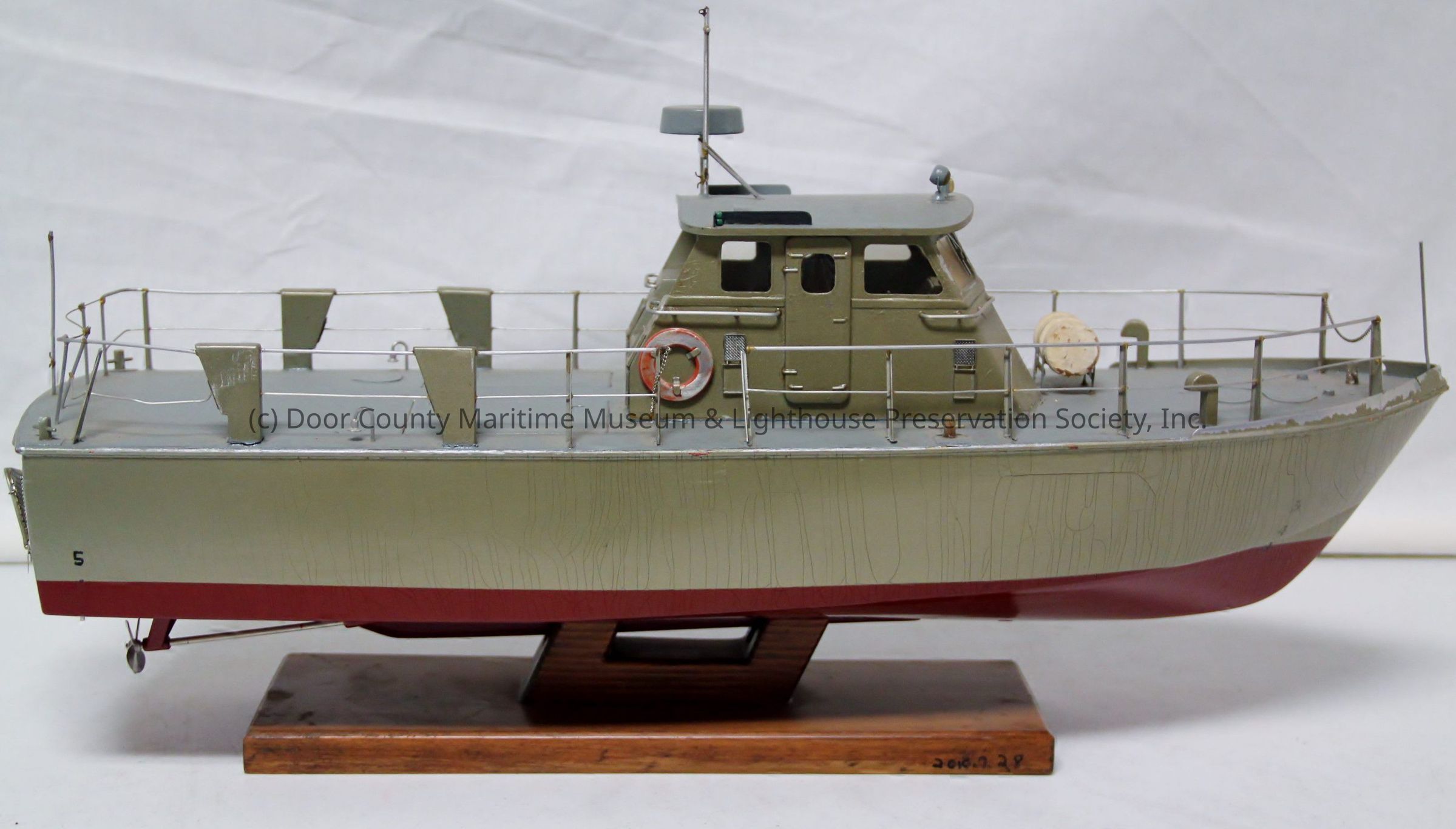 model 1/4" to 1' scale; wood construction; red painted hull; silver gray topside and superstructure; fitted with some detail