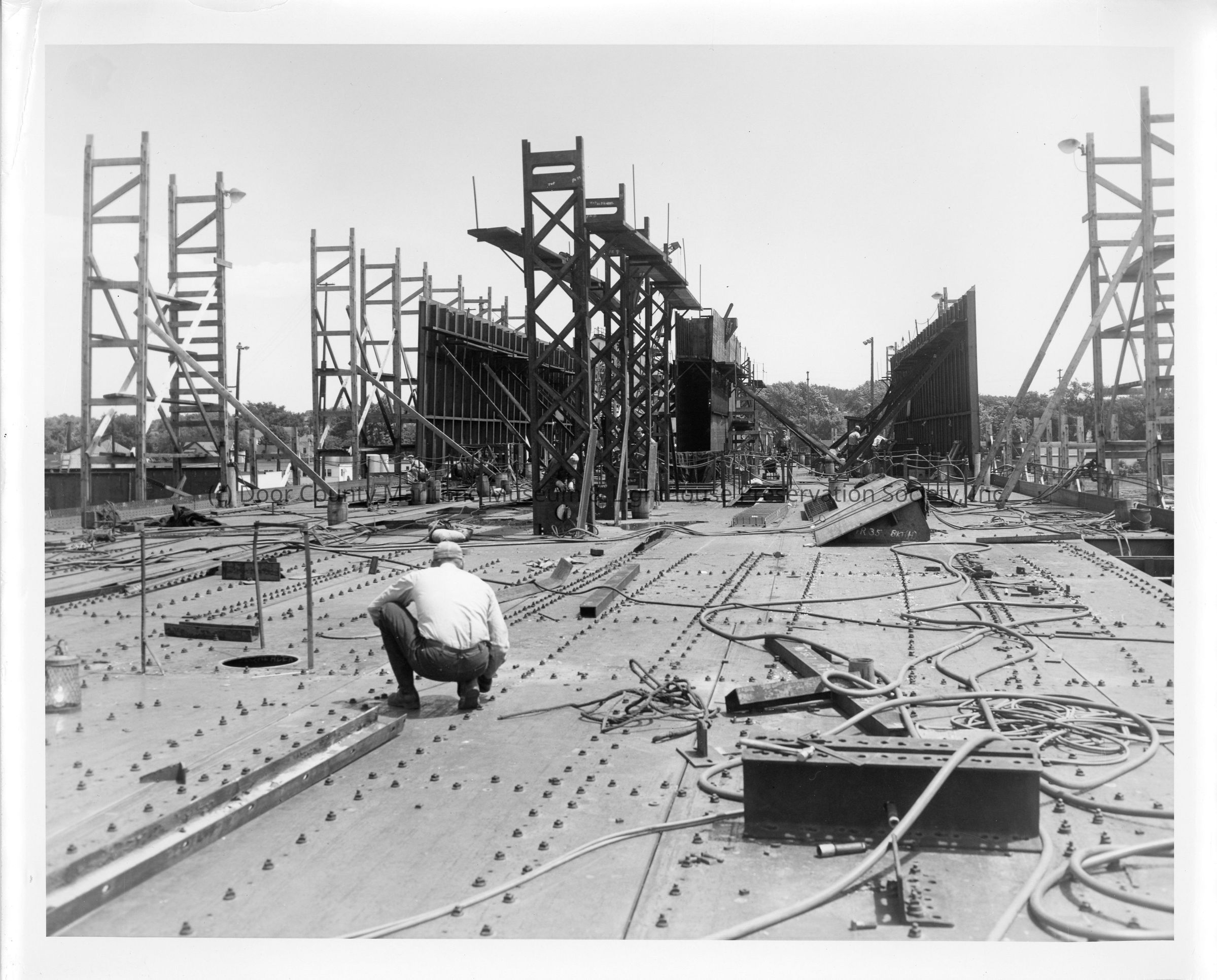 Deck of Spartan under construction July 1, 1951