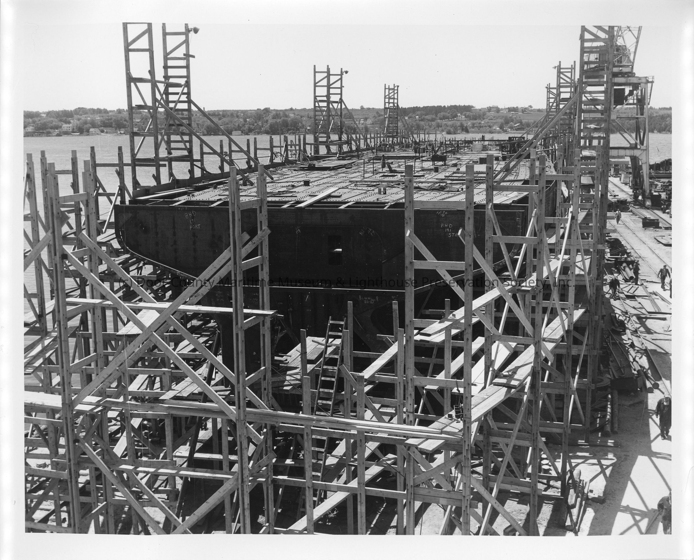 Deck of the Spartan in scaffolding under construction June 1, 1951Entry/Object ID