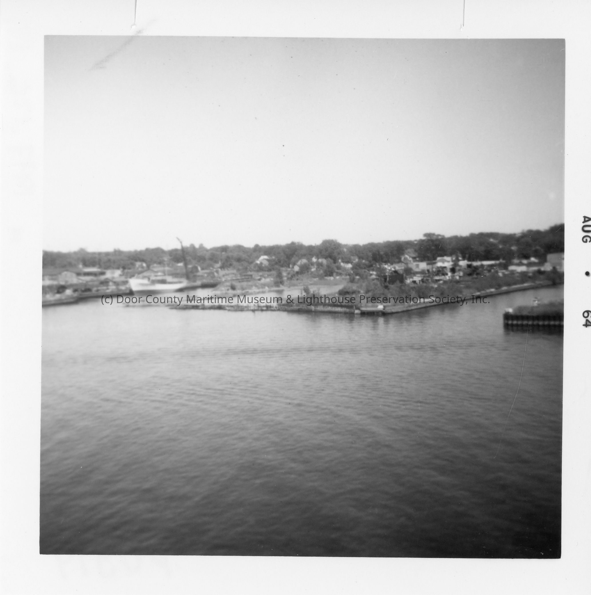 Docked vessel with view of shoreline August 1964