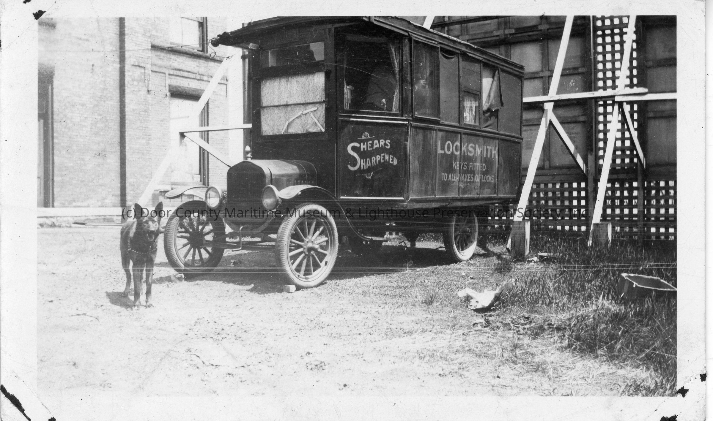 Dog in front of locksmith car