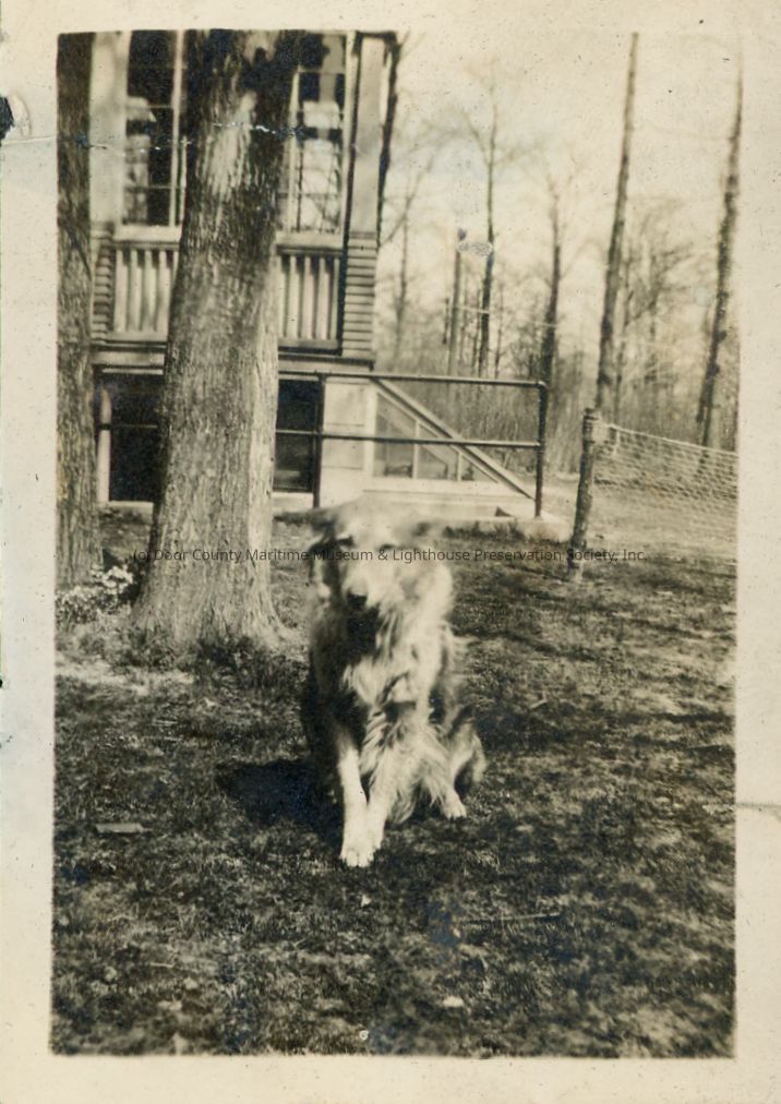 Unidentified dog in front of a house.