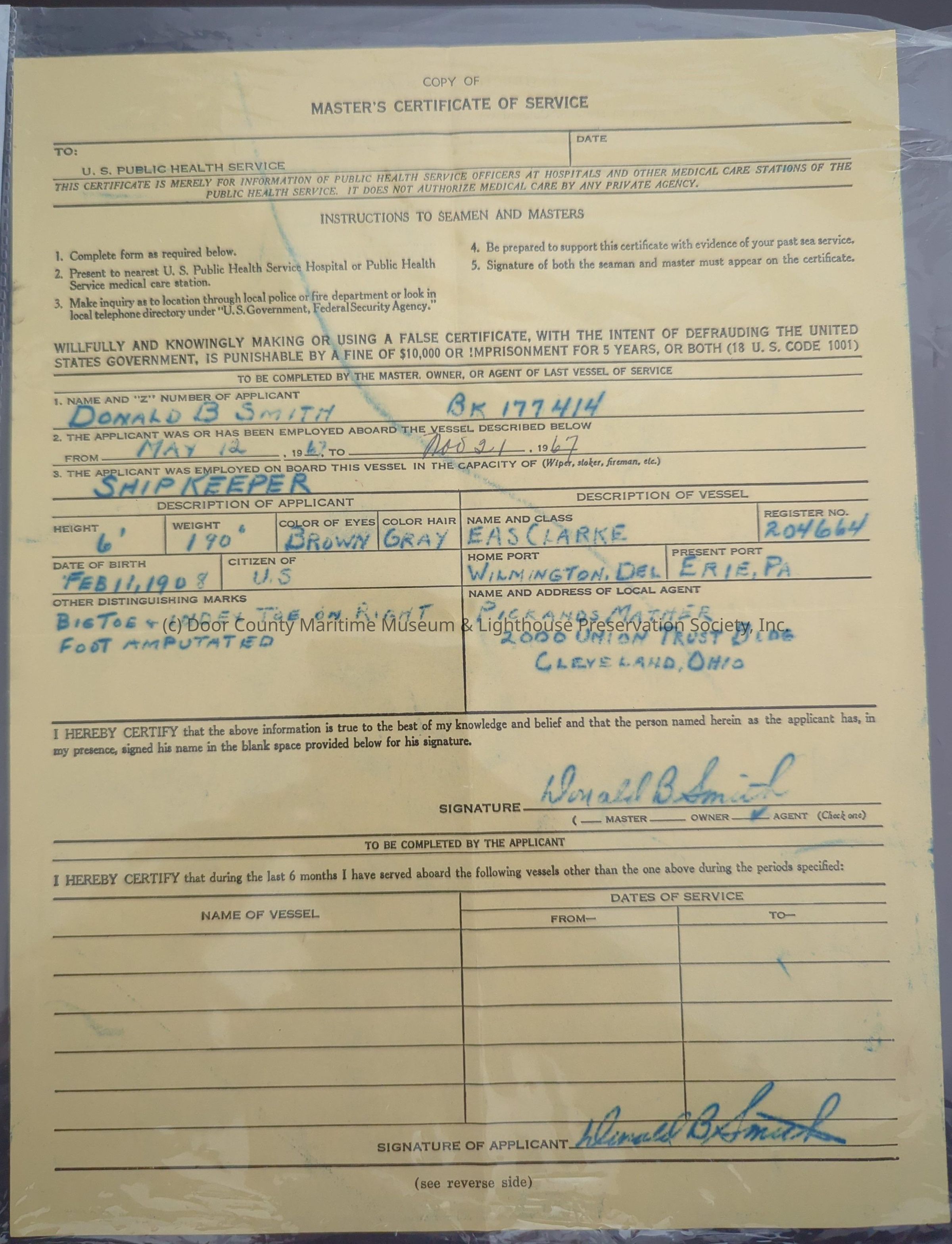 Donald B. Smith master's certificate of serviceEntry/Object ID