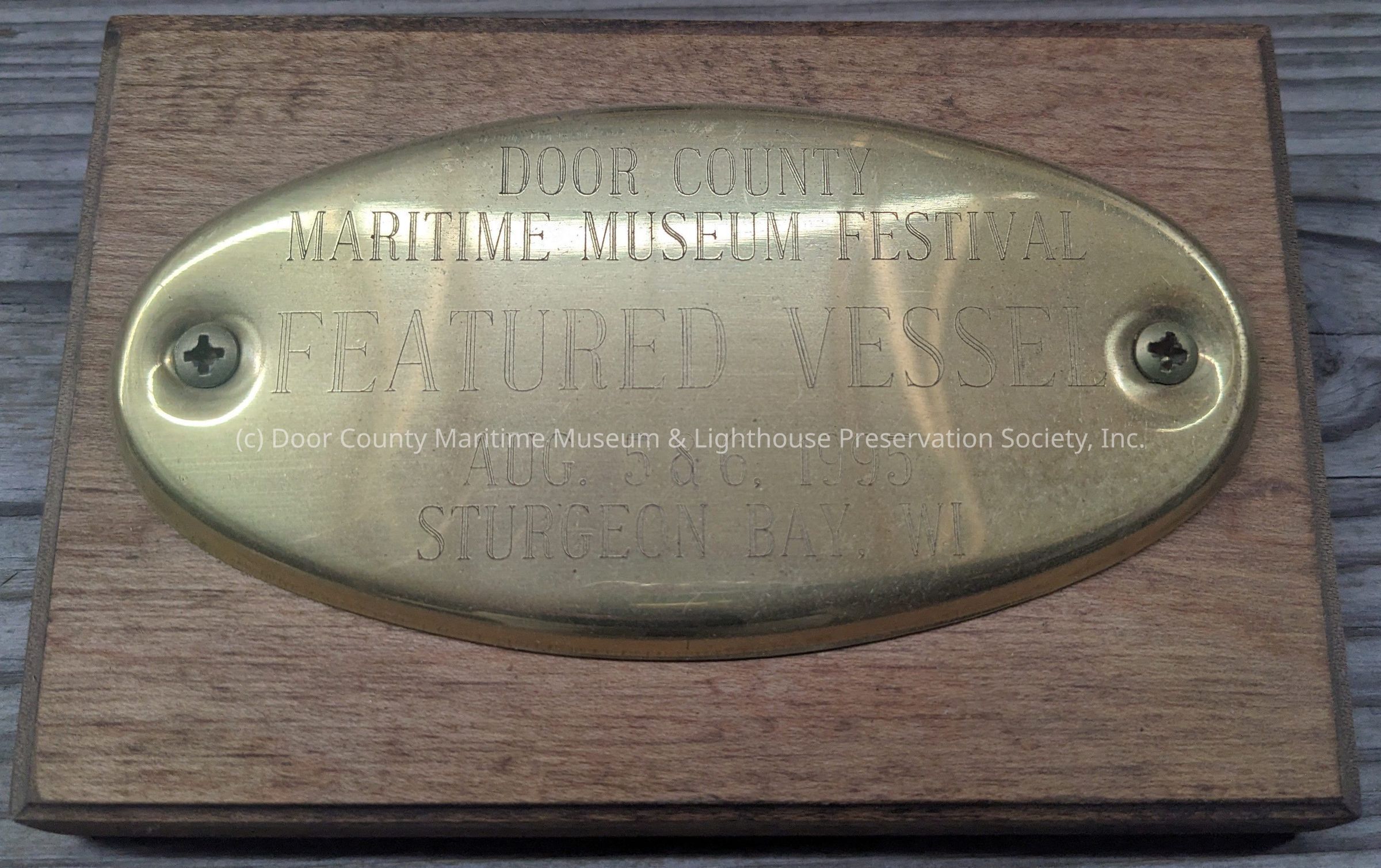 Door County Maritime Museum Festival Featured Vessel 1995 Plaque
