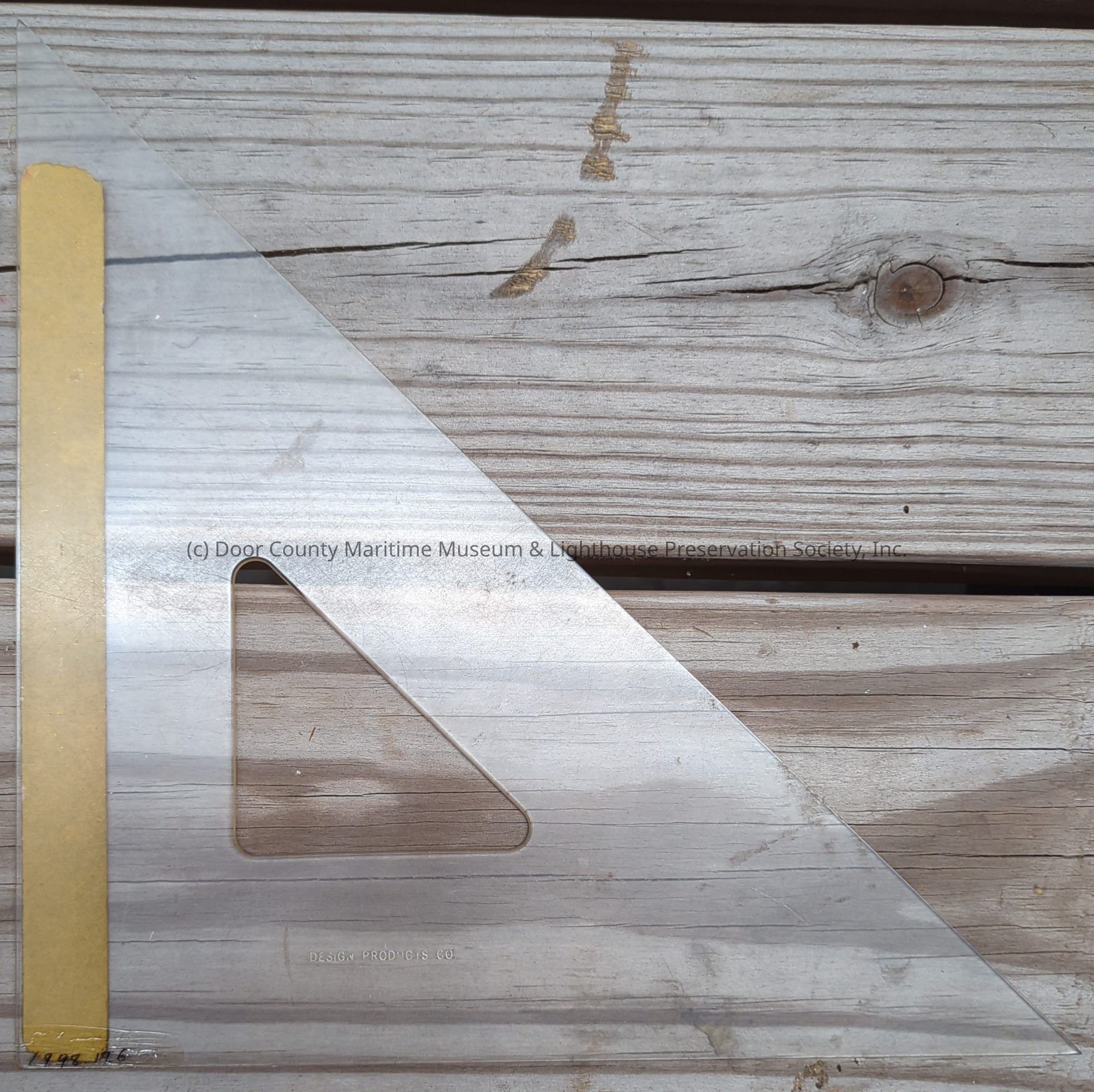 Plastic transparent triangle with masking tape attached to one side