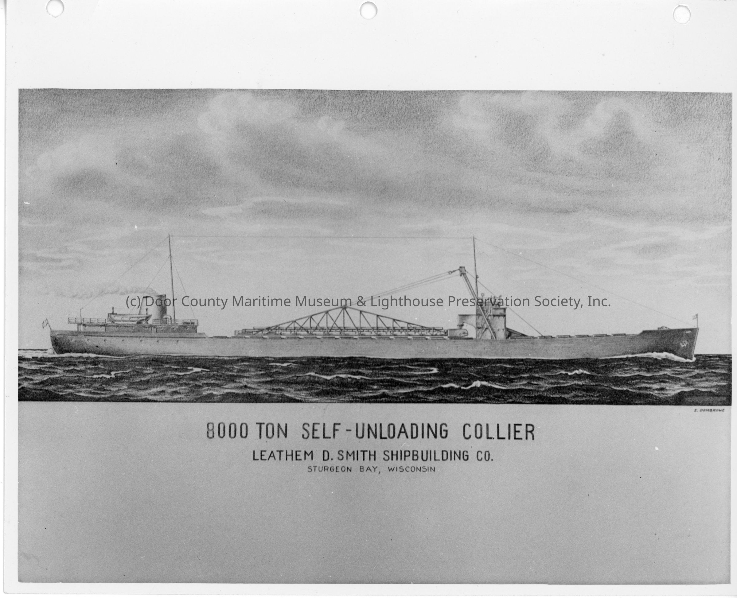 Drawing of Leathem D. Smith shipbuilding co. 8,000-ton self-unloading collierEntry/Object ID