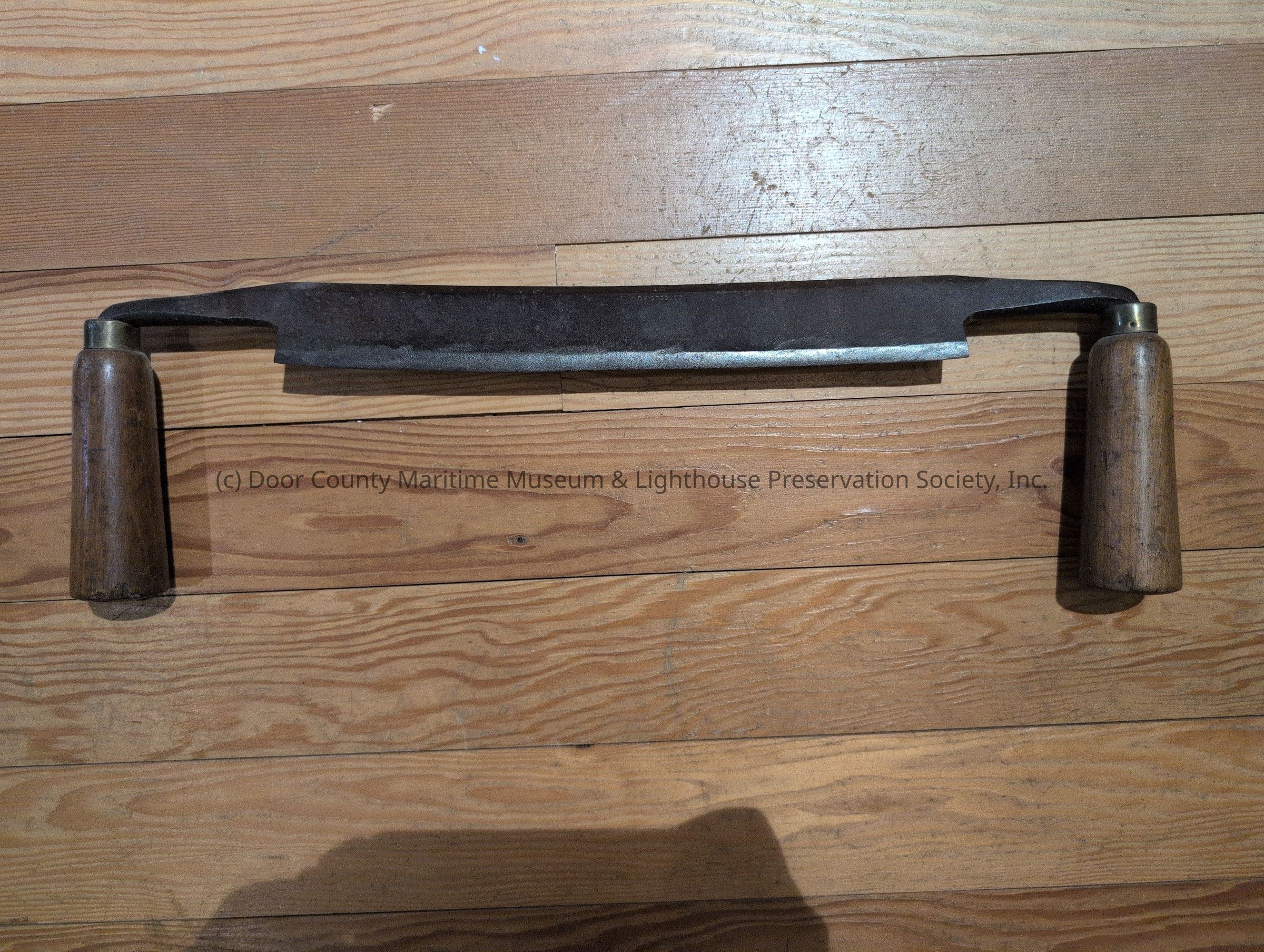 Drawshave; wooden handles; 2 1/2" drill is fastened to handle with bolt; #12.
