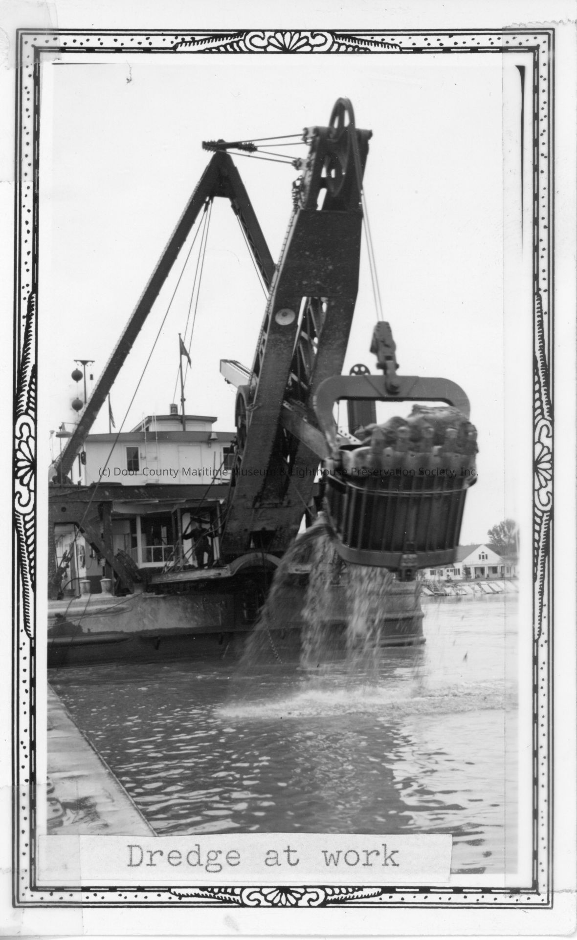 Dredge at work with one man on deck