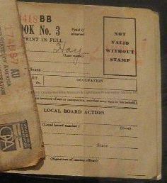 Tan paper; WAR RATION BOOK No. 3; issued to Bessie Pearl Hay; No. 663417BB; includes ration stamps.