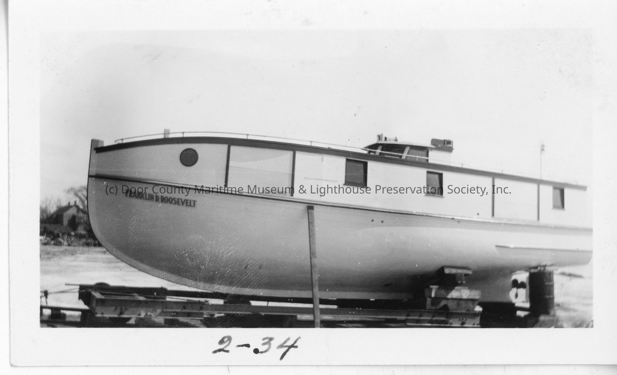 Fishing tug Franklin D. Roosevelt in crib at Peterson Boat Works February 1934Entry/Object ID
