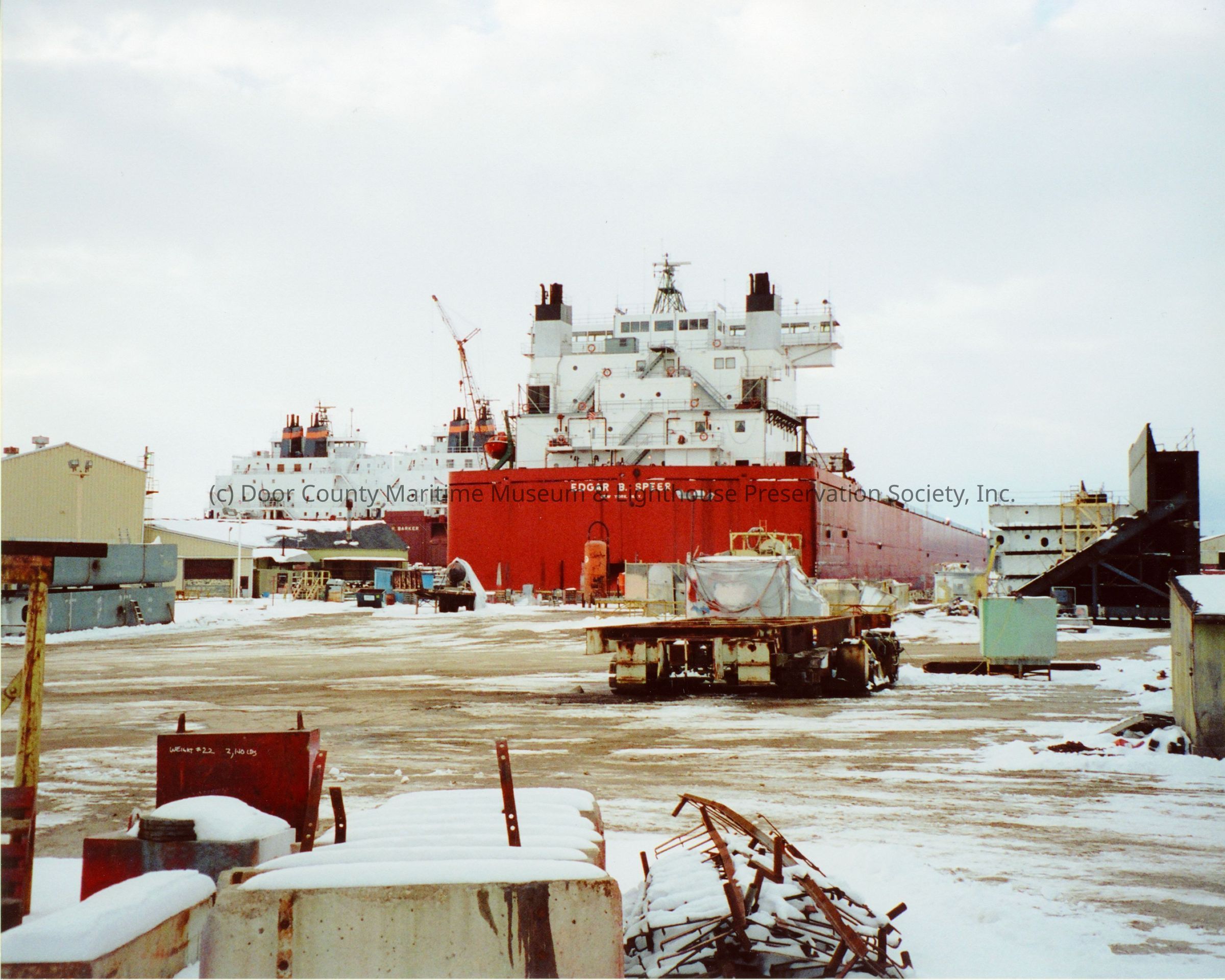 Edgar B. Speer next to James R. Barker at Bay Shipbuilding April 5, 2002
