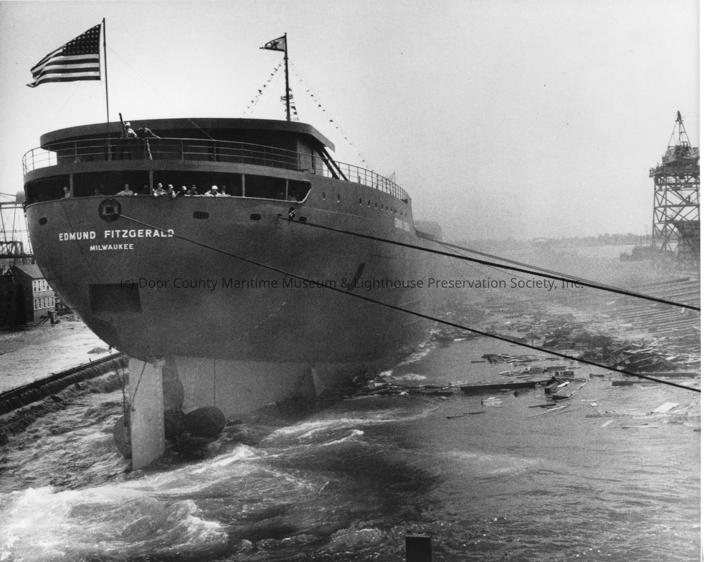 Edmund Fitzgerald view from bow in water following launch 1958