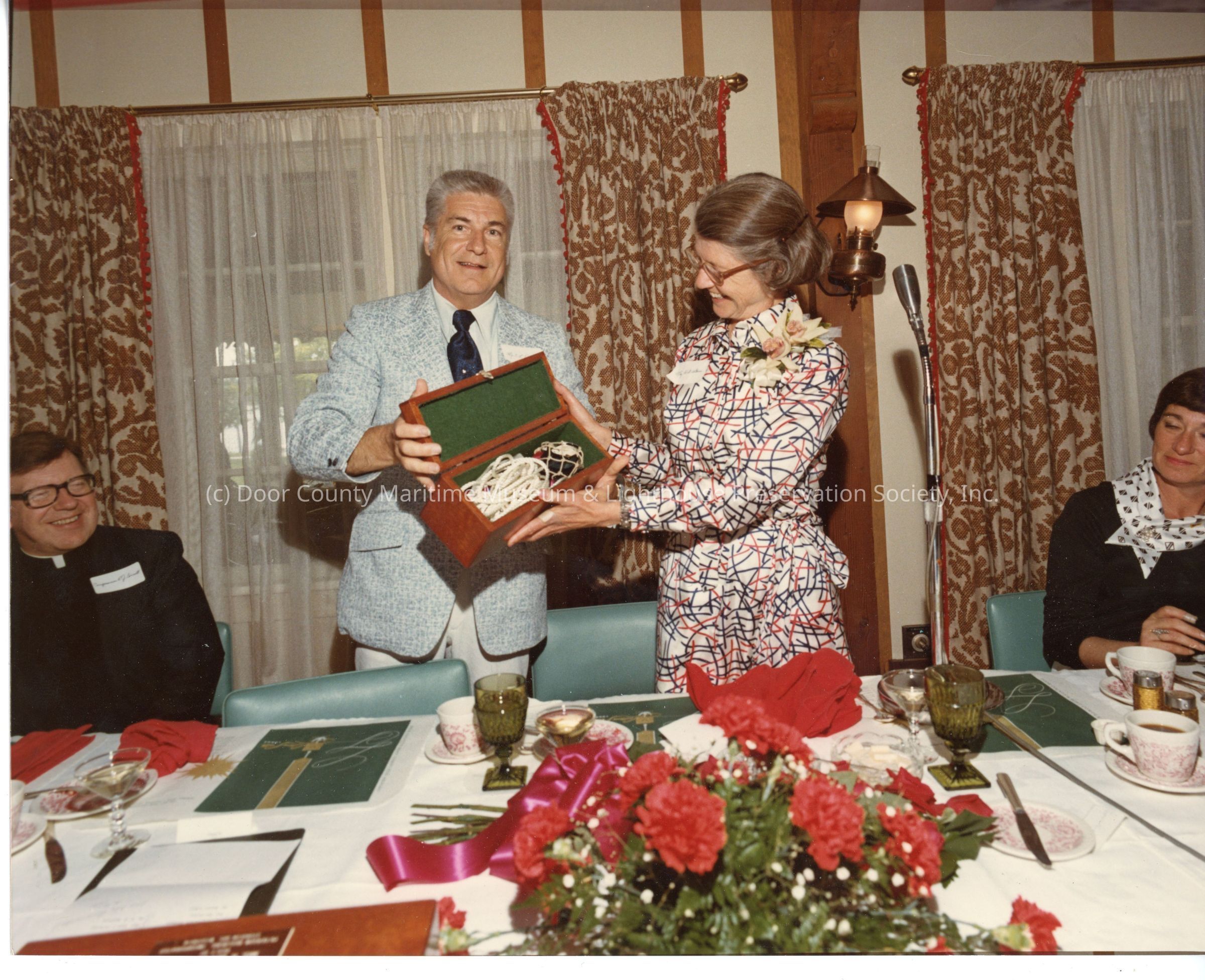 Ellsworth Peterson handing christening case to Oceanus sponsorEntry/Object ID