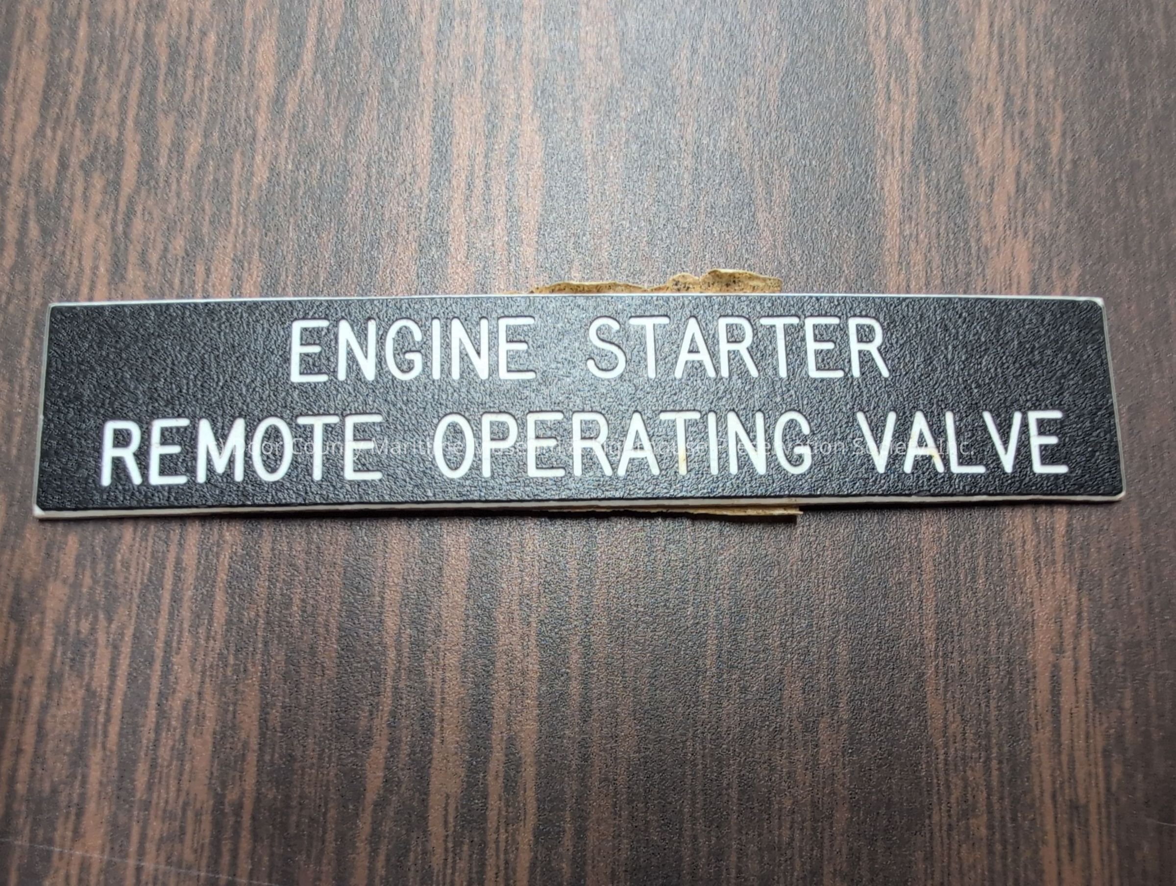 Engine Starter Remote Operating Valve Nameplate