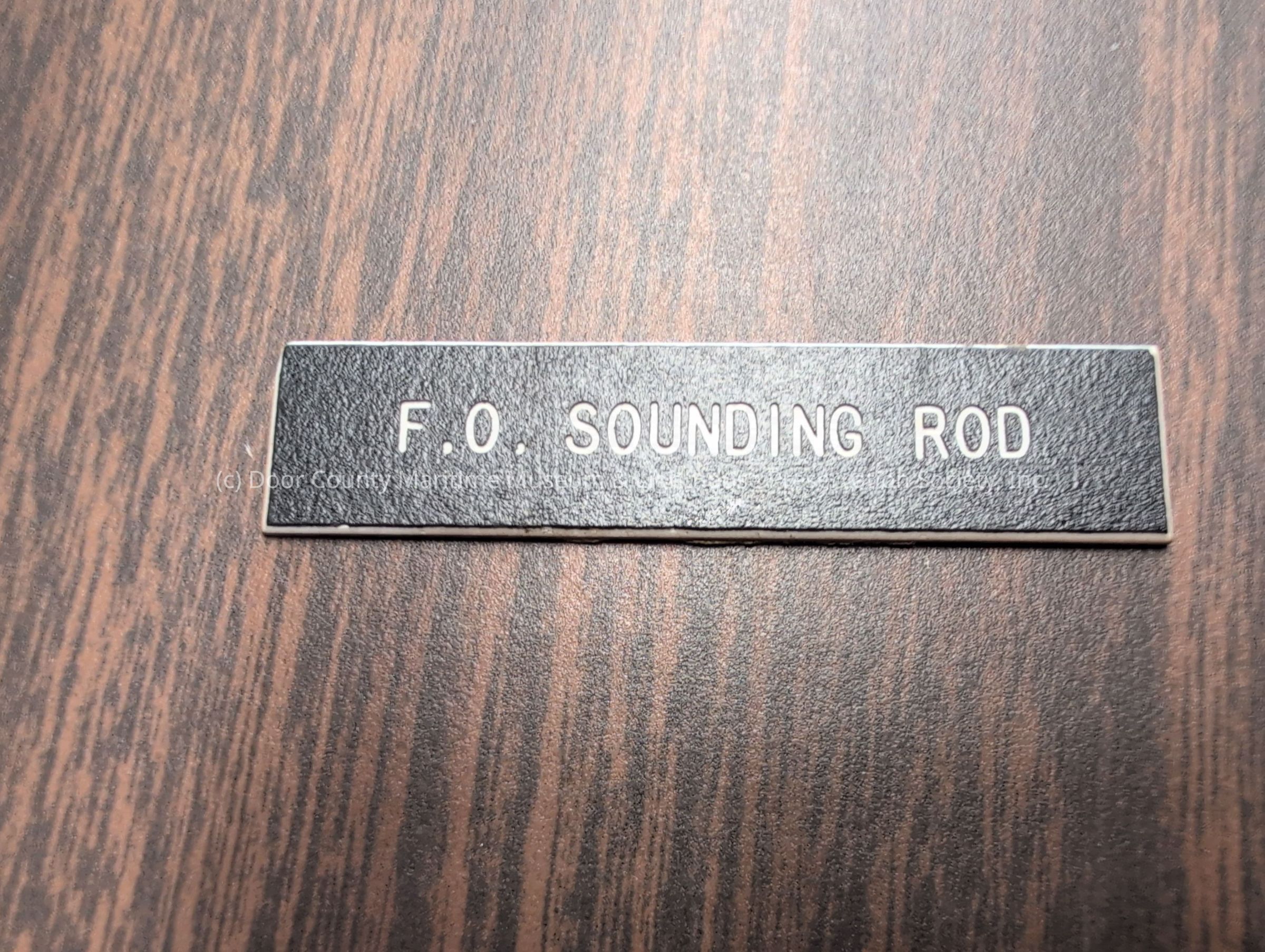 Wooden nameplate stating "F.O. Sounding Rod"