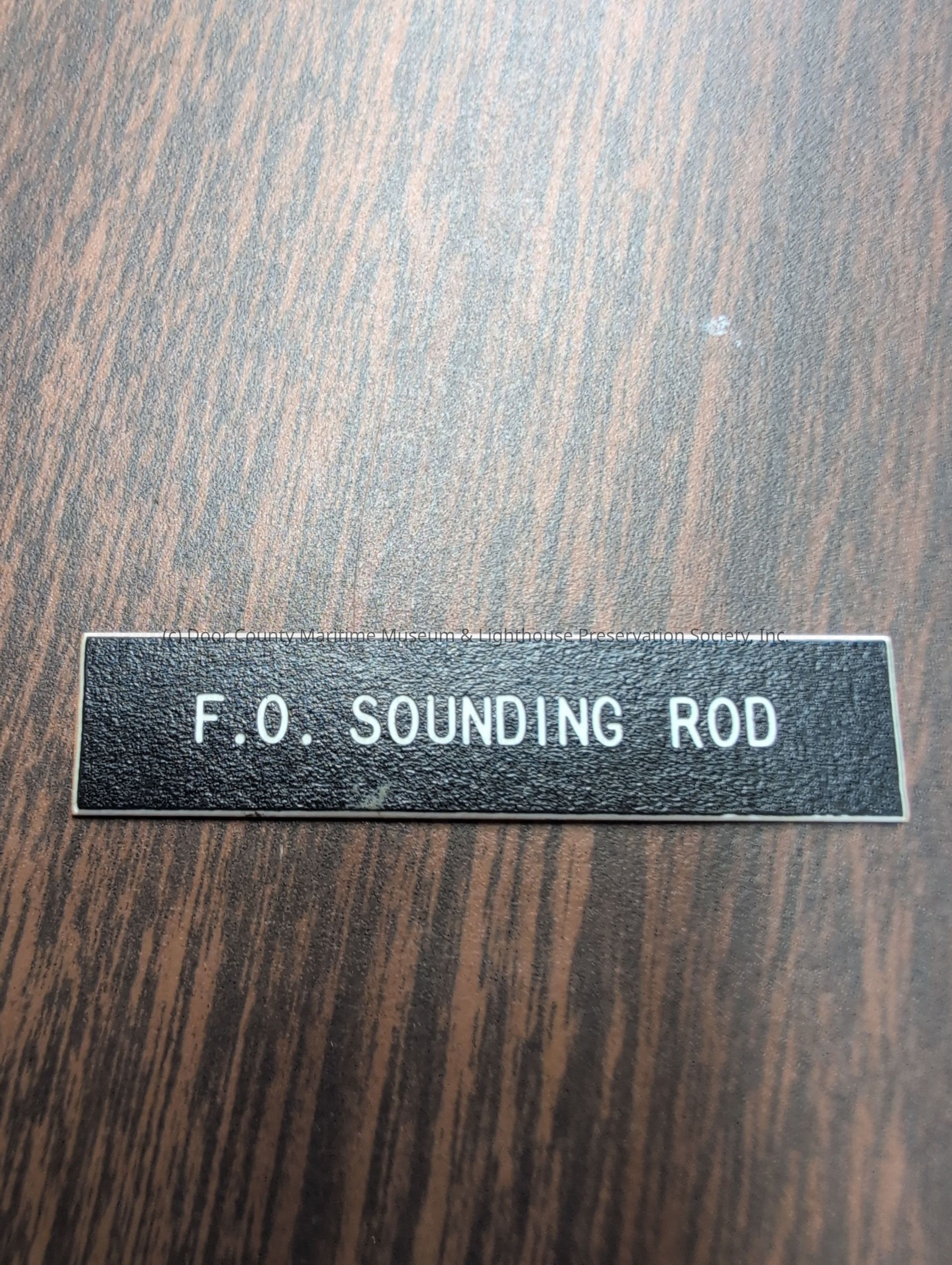Wooden nameplate stating "F.O. Sounding Rod"
