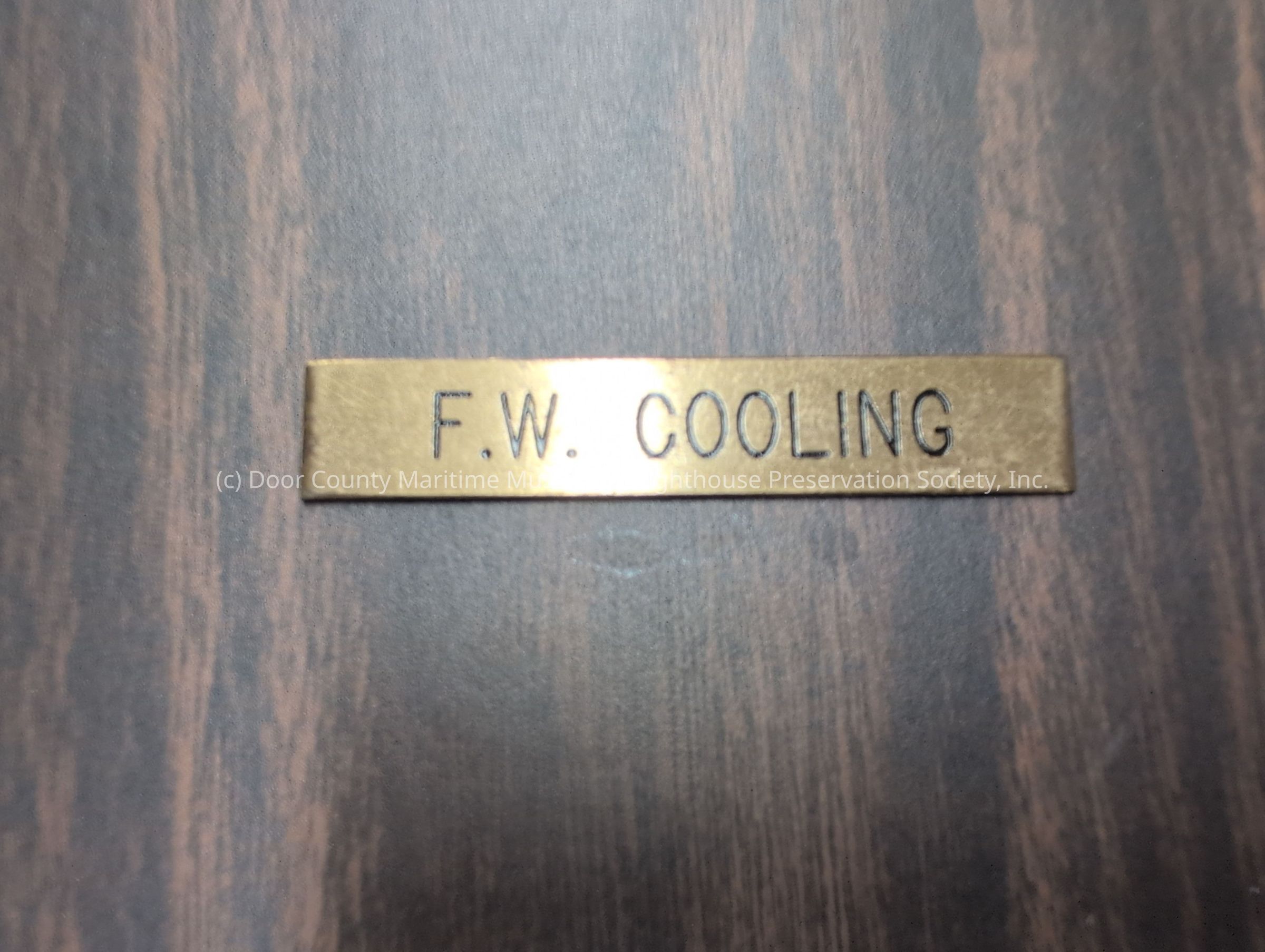 Brass nameplate stating "F.W. Cooling"