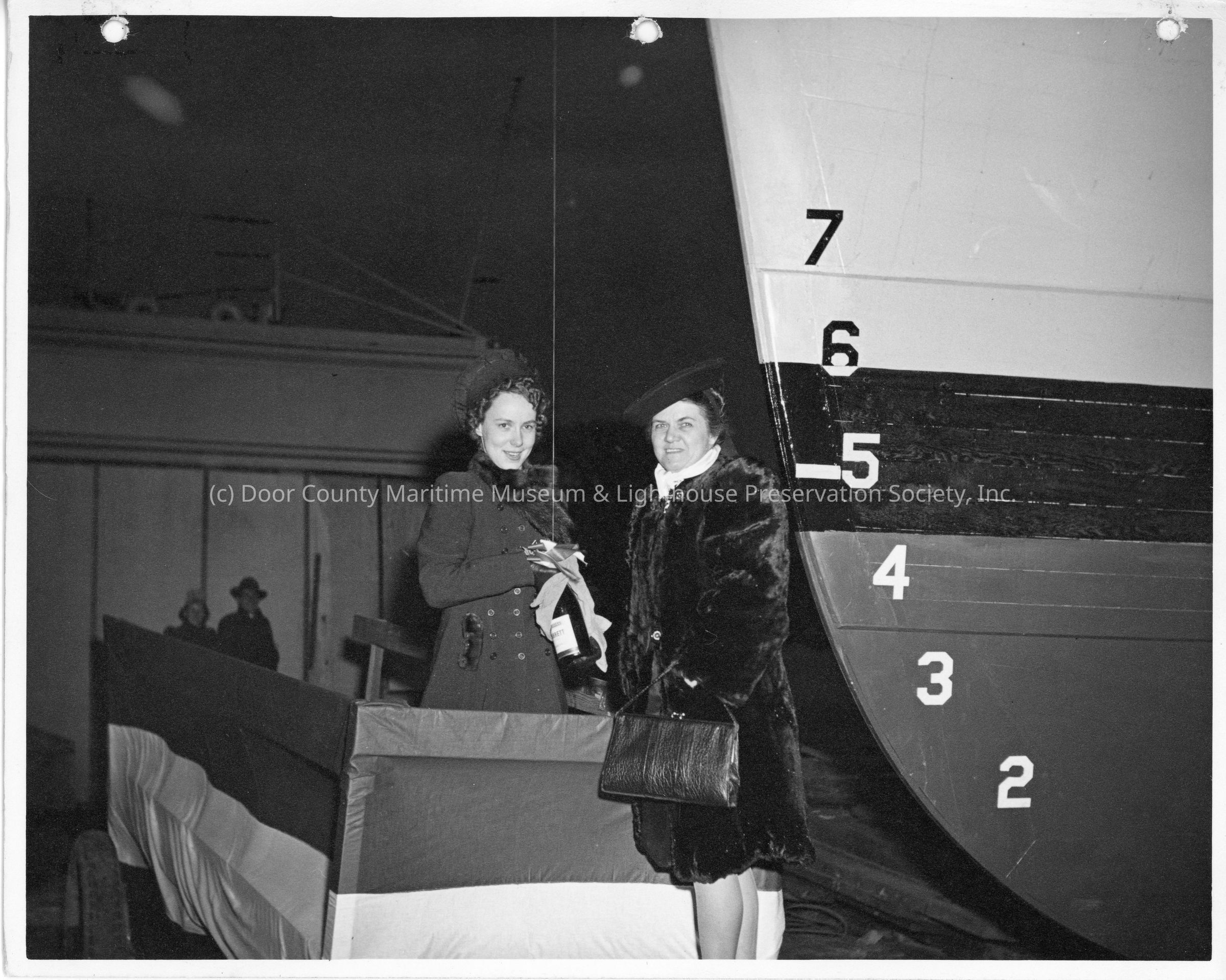 Ship sponsor holding christening bottle at christening of PC-537