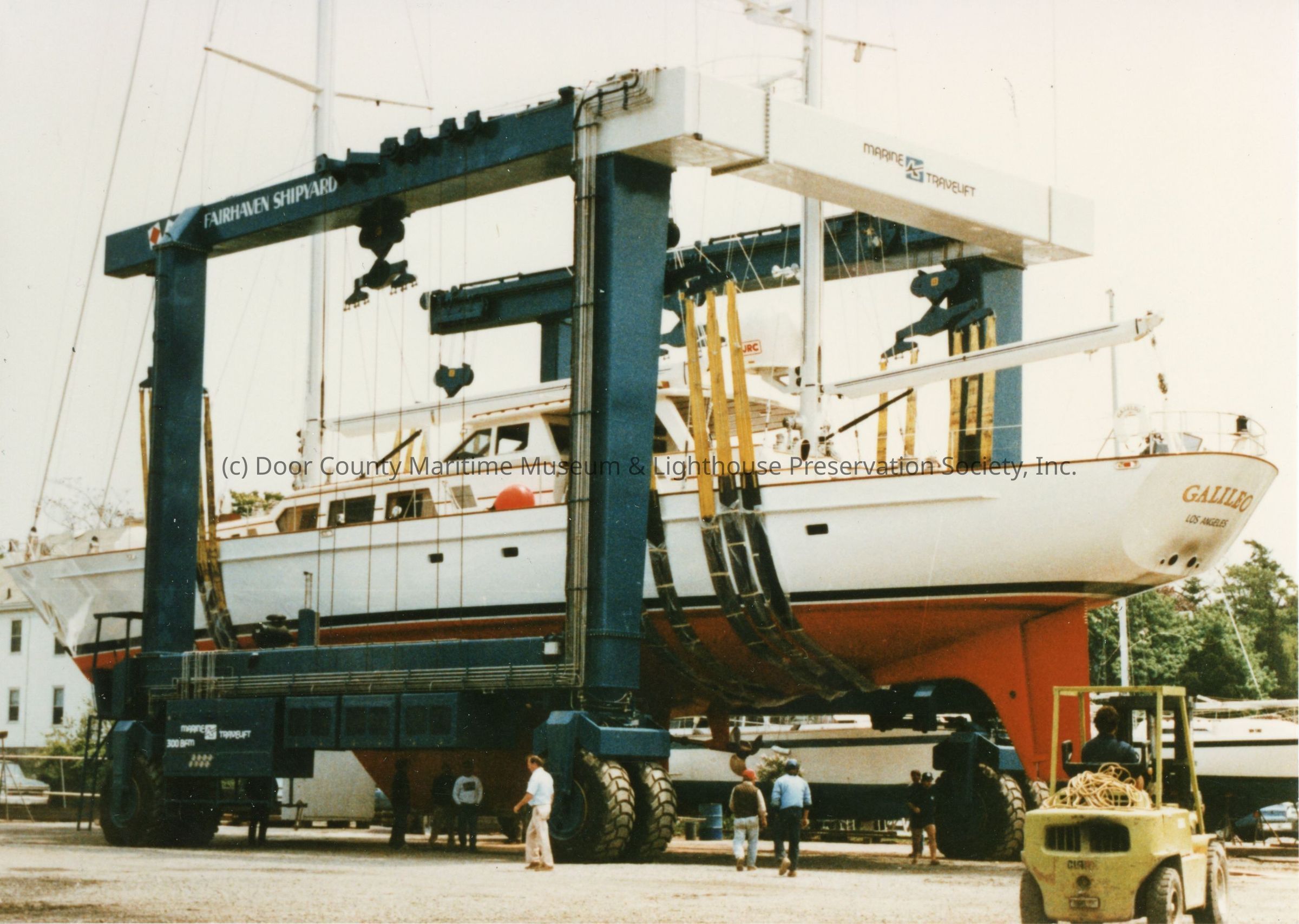 Fairhaven Shipyard Travelift holding yacht Galileo