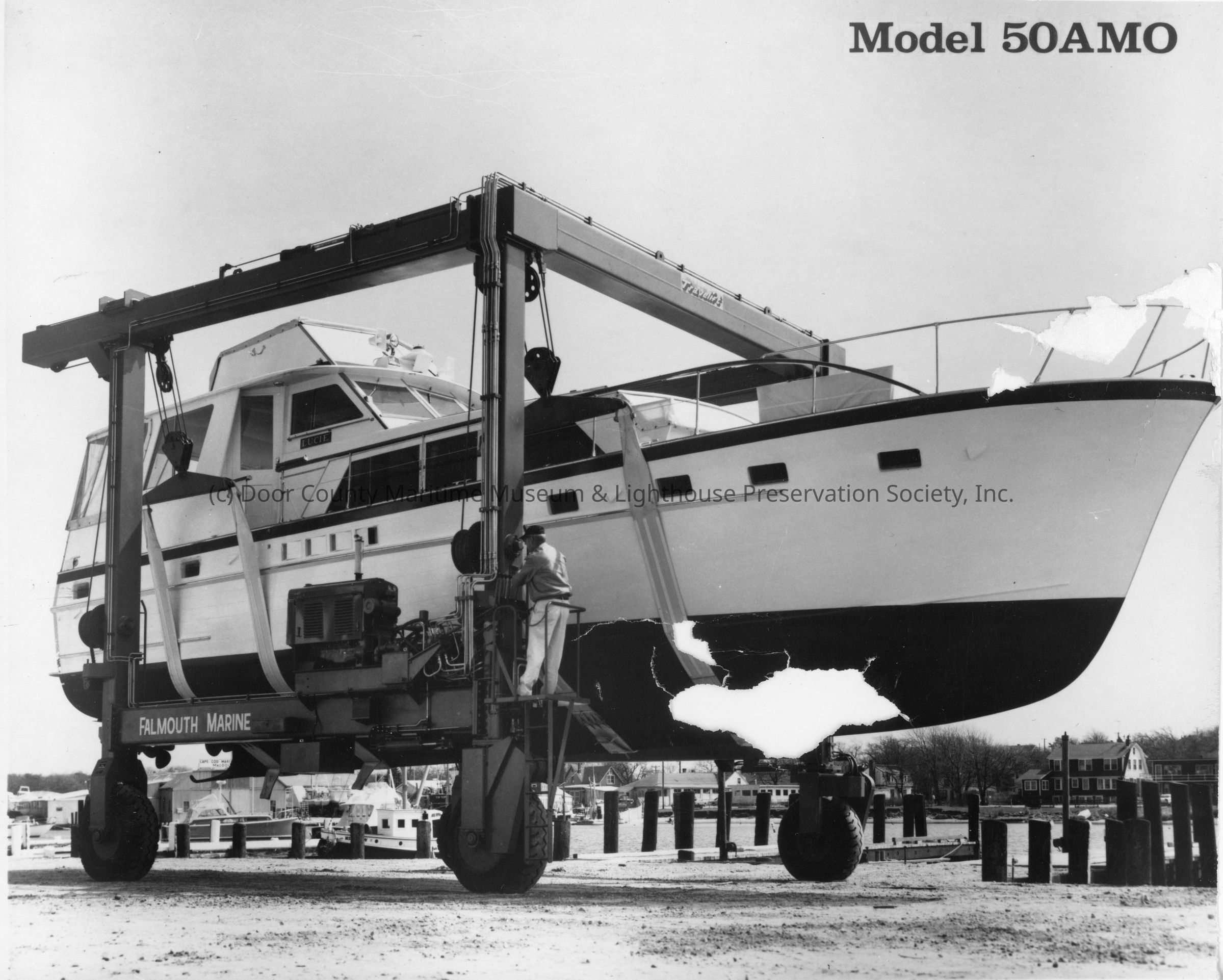 Falmouth Marine Travelift model 50AMO holding yacht