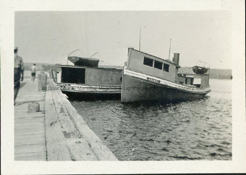 Two fish tugs at an unidentified dock, the Alice C. of Manistique, and the Anabel.Location