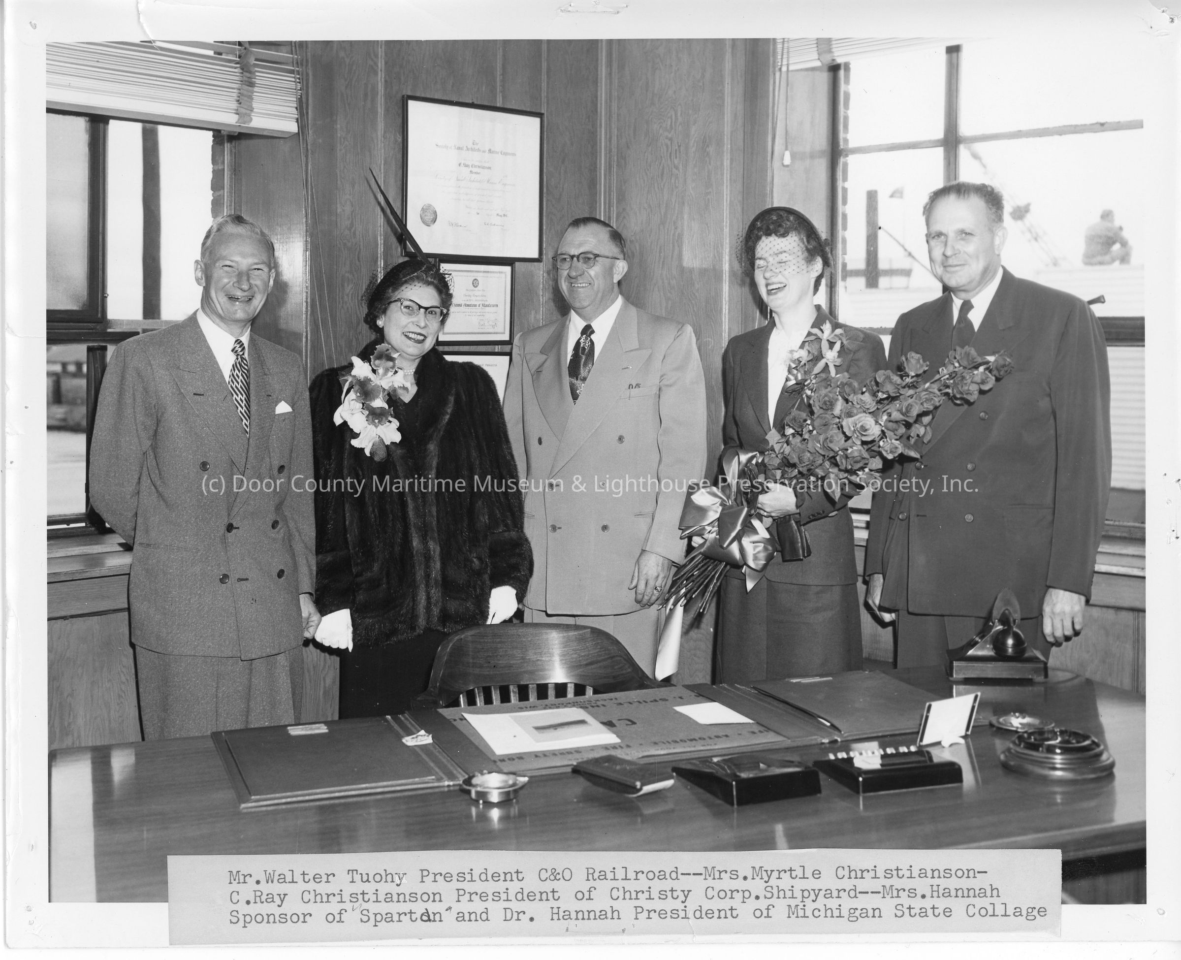 Five people at Spartan christening September 6, 1952Entry/Object ID