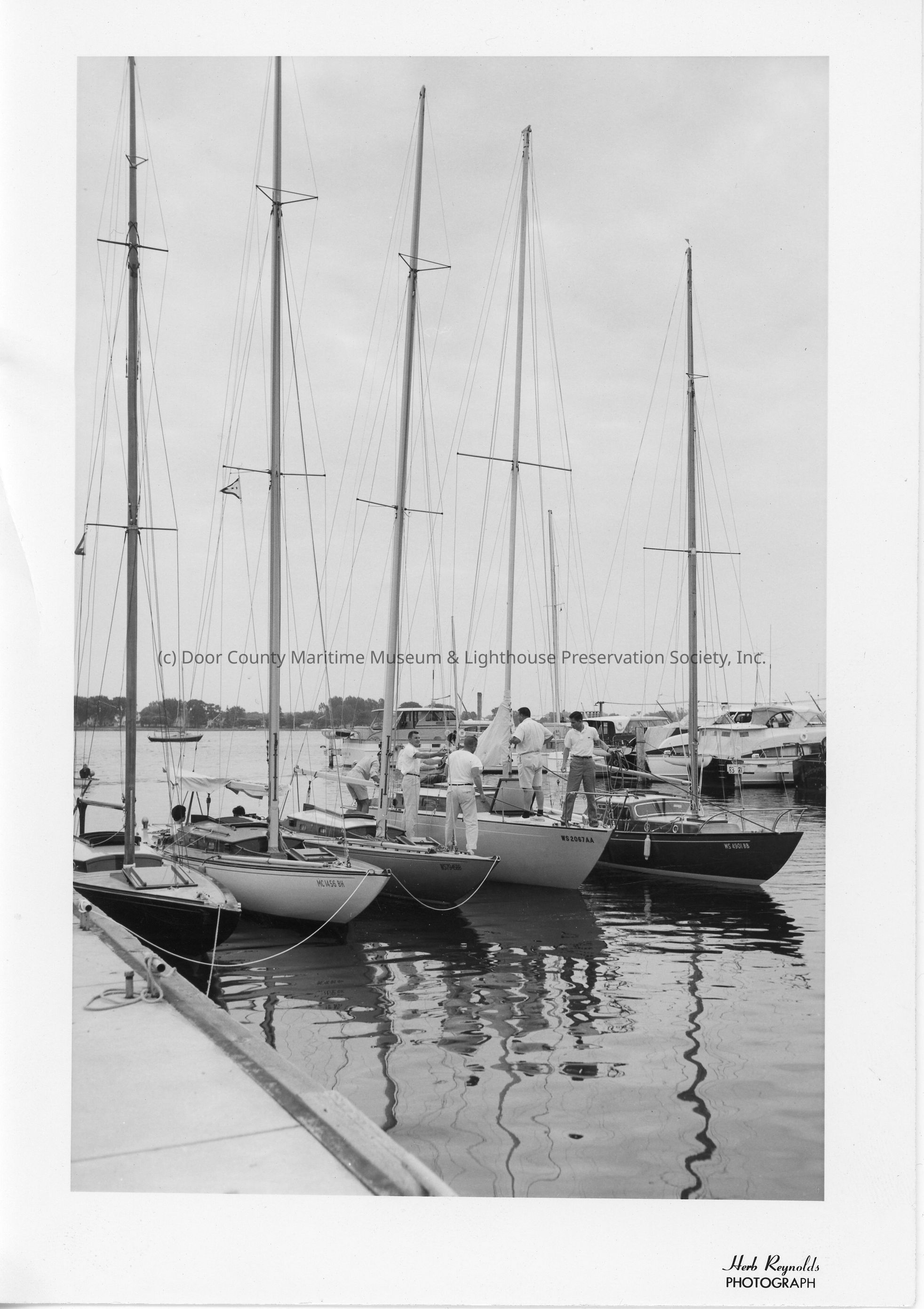 five sail boats docked