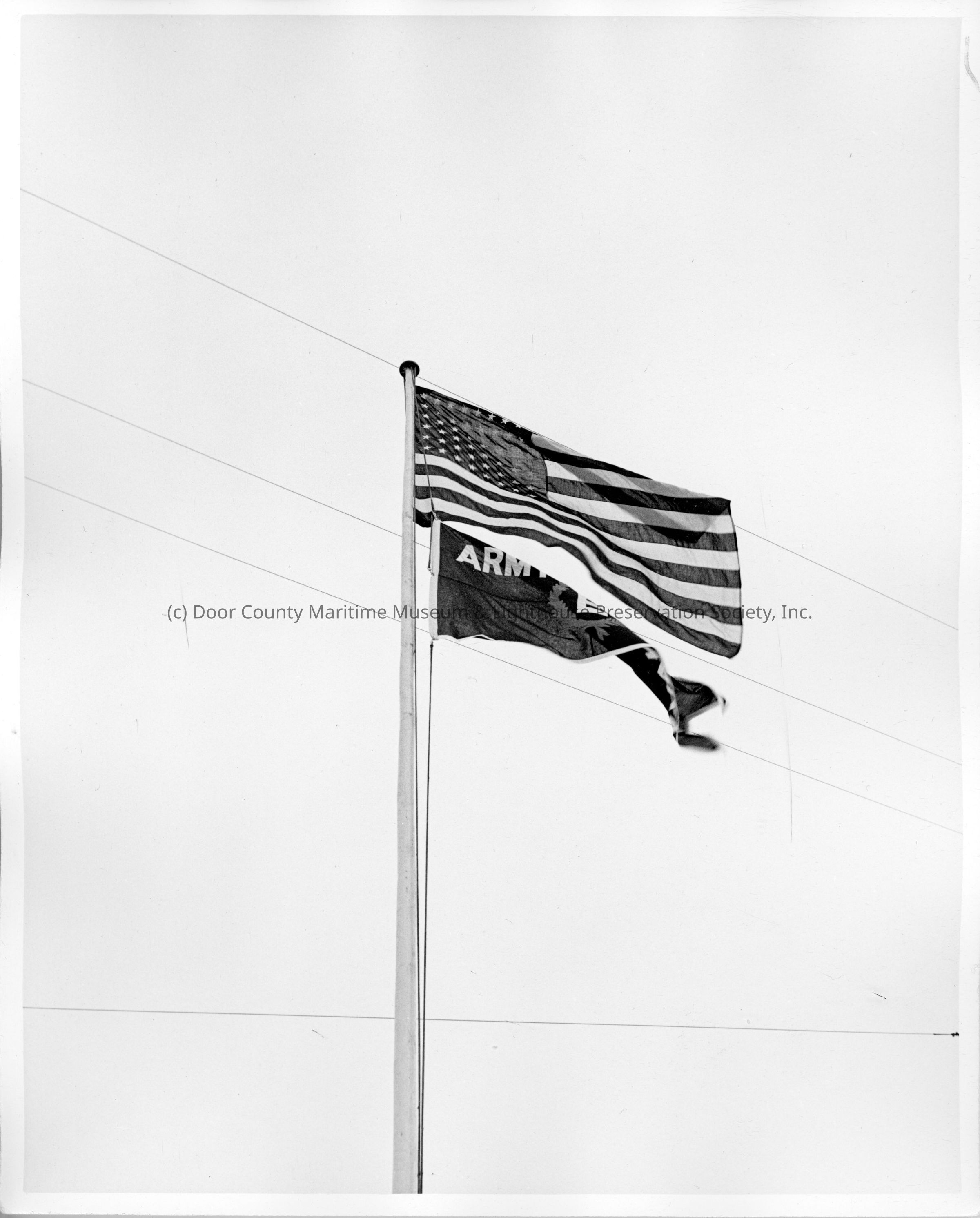 Flag pole with American flag and army E flagEntry/Object ID